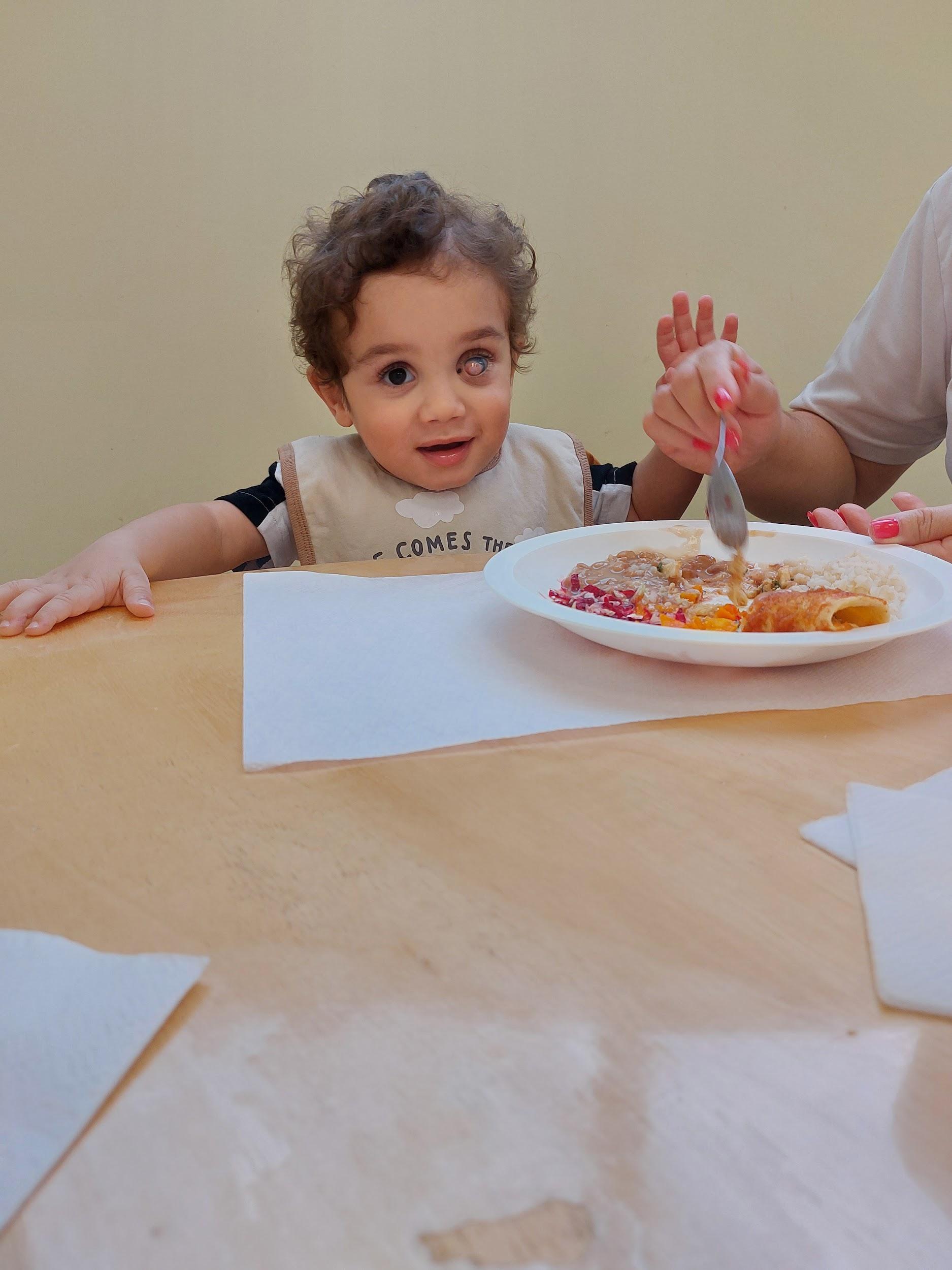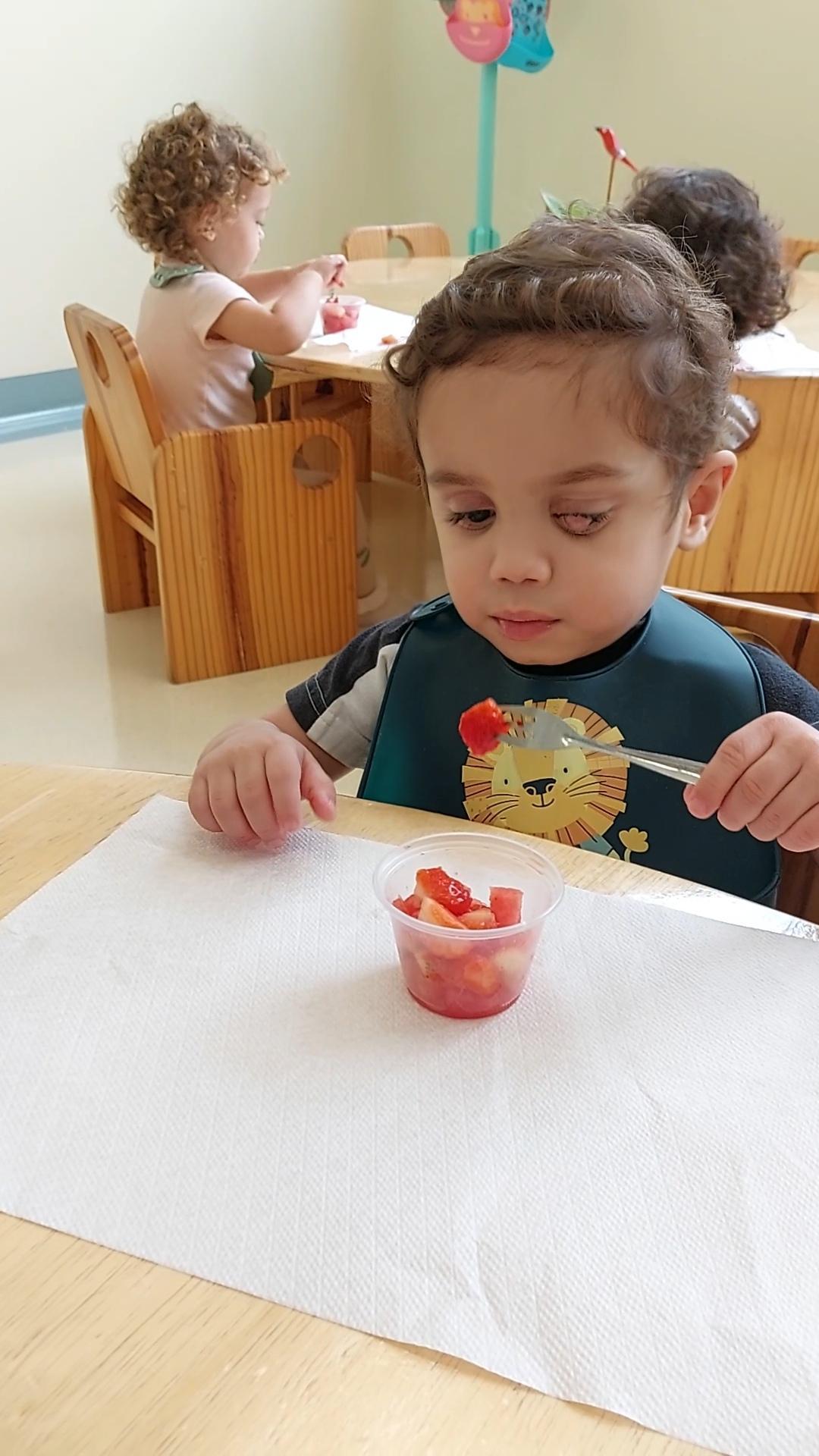 Nesse pequeno ato de autonomia, cada garfada, cada escolha, cada sorriso é um instante de descoberta e encanto, como se a refeição se transformasse em celebração da infância.