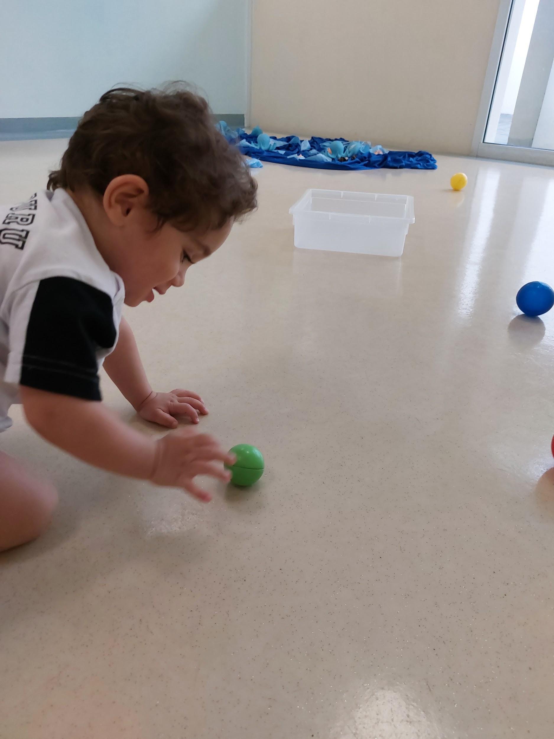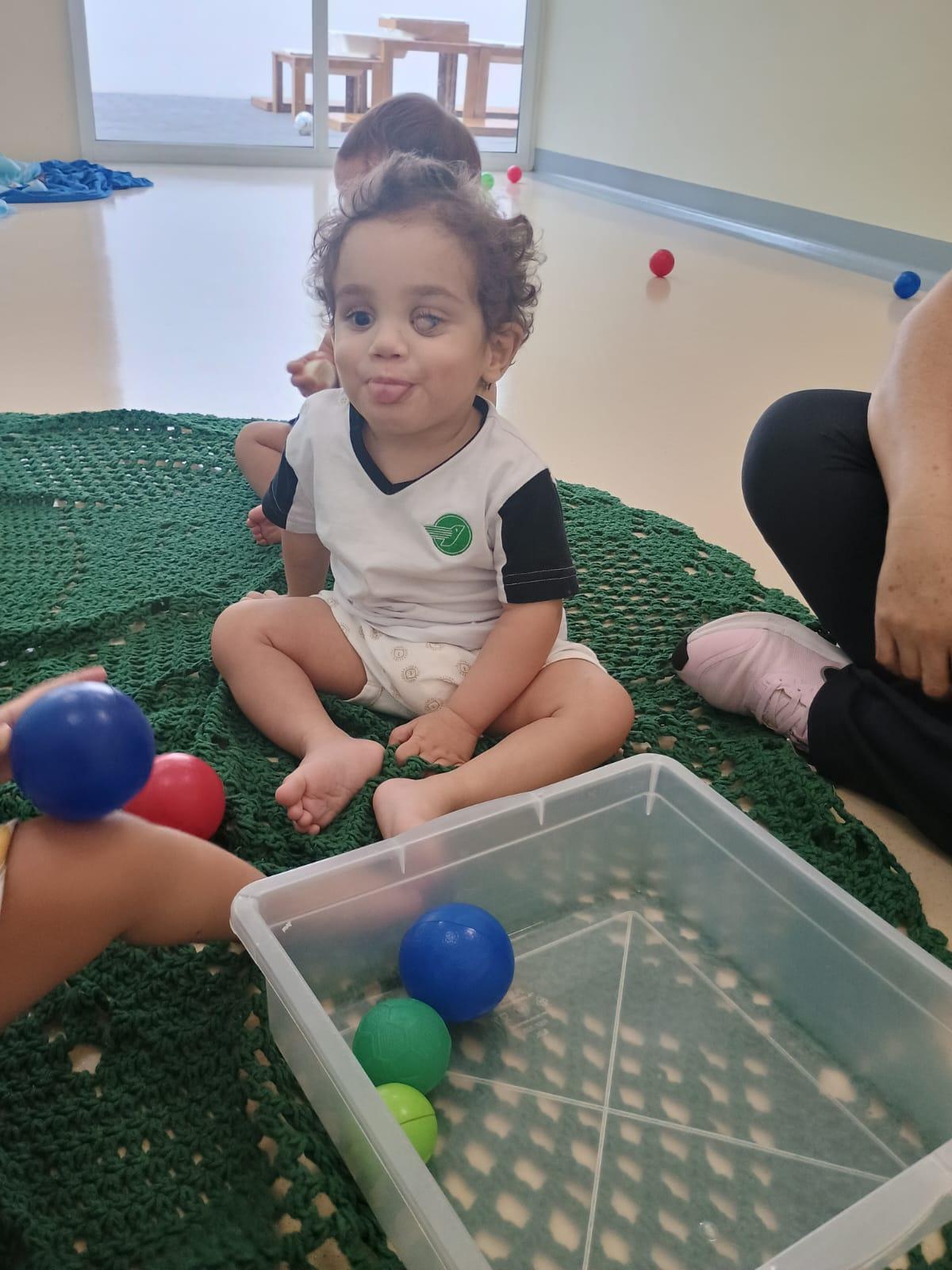 Seja no parque ou na sala, Para Ethan as bolinhas coloridas viram uma verdadeira aventura. ele observa cada uma rolando pelo chão, arremessa com entusiasmo e as coloca na bandeja com uma alegria que transborda em seu sorriso.
