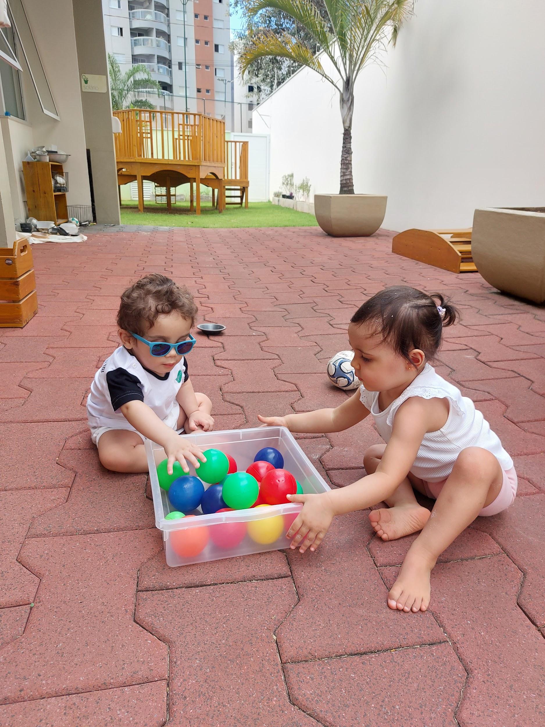Ao lado de sua amiga Helena, a brincadeira ganha ainda mais vida, entre risos, movimentos e descobertas, eles compartilham momentos de pura alegria.
