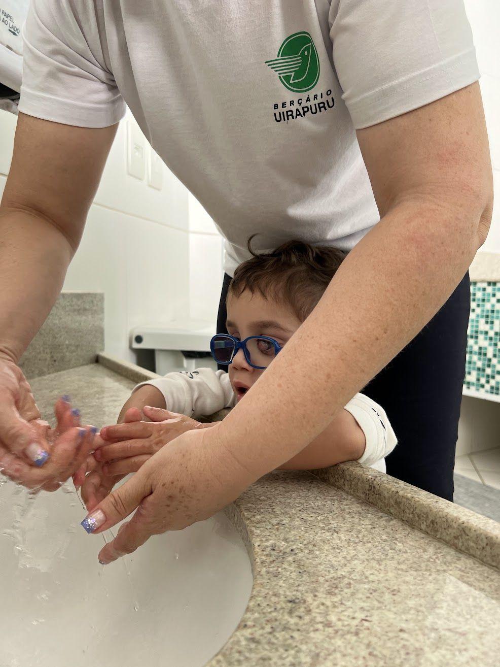 Cada gesto, do toque da escova até a água nas mãos, é vivido com concentração e prazer, transformando a rotina em um instante de descoberta, cuidado, aprendizado e delicadeza.