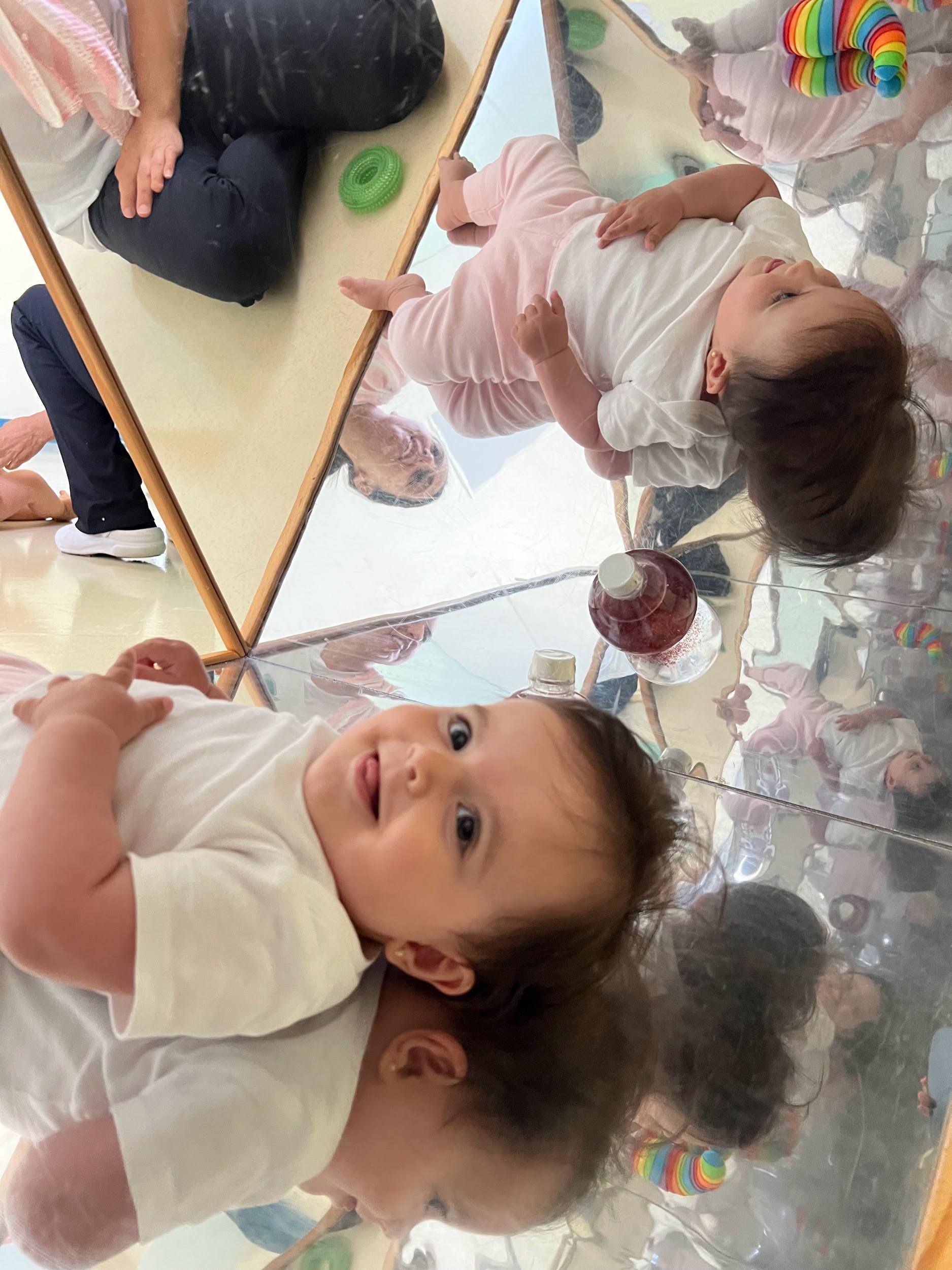 Neste encontro com o próprio reflexo, Pérola vivencia algo essencial, o espelho é um convite para perceber-se, se reconhecer e explorar o mundo de dentro para fora, despertando curiosidade, atenção e encantamento desde os primeiros meses de vida.