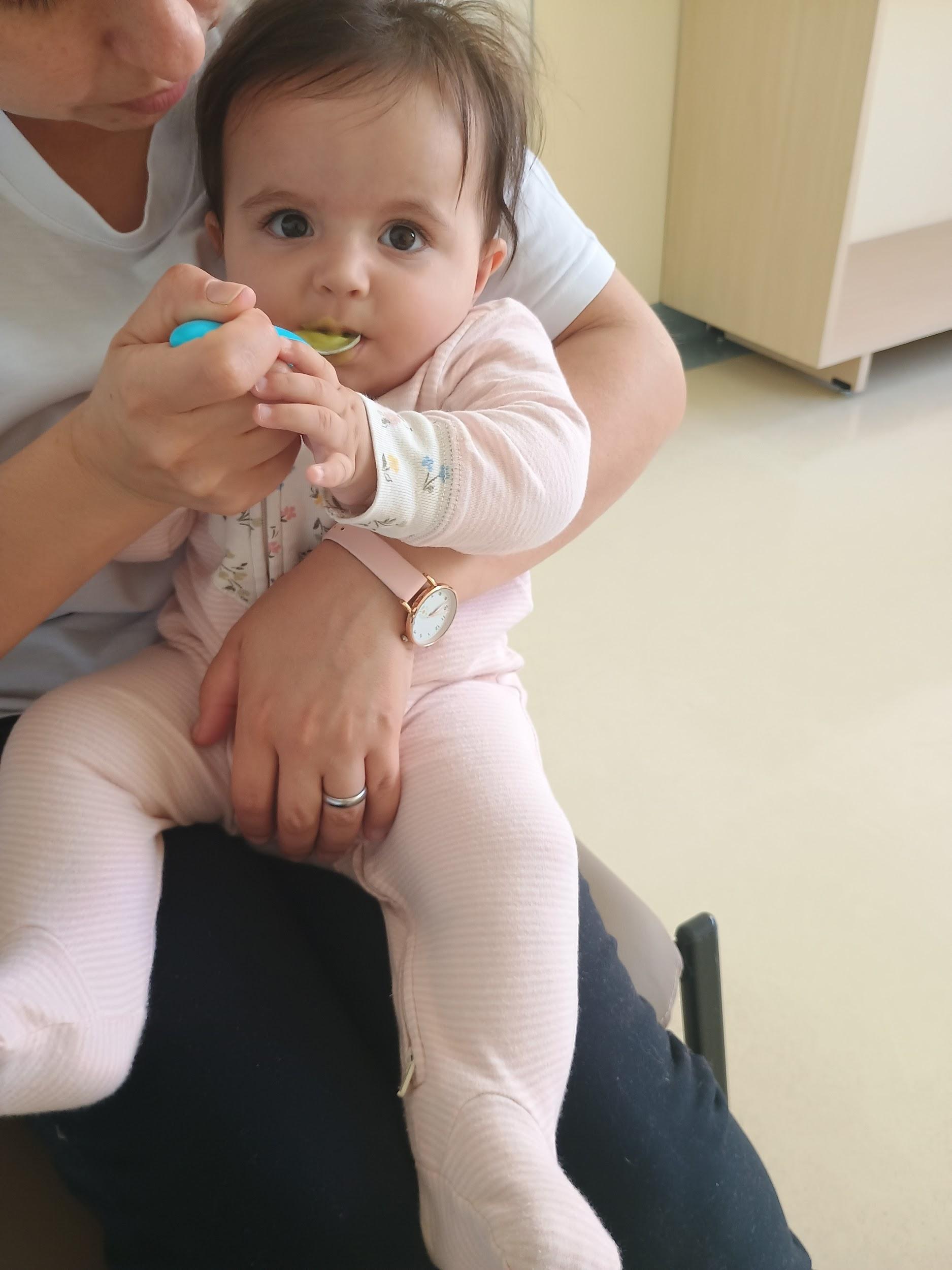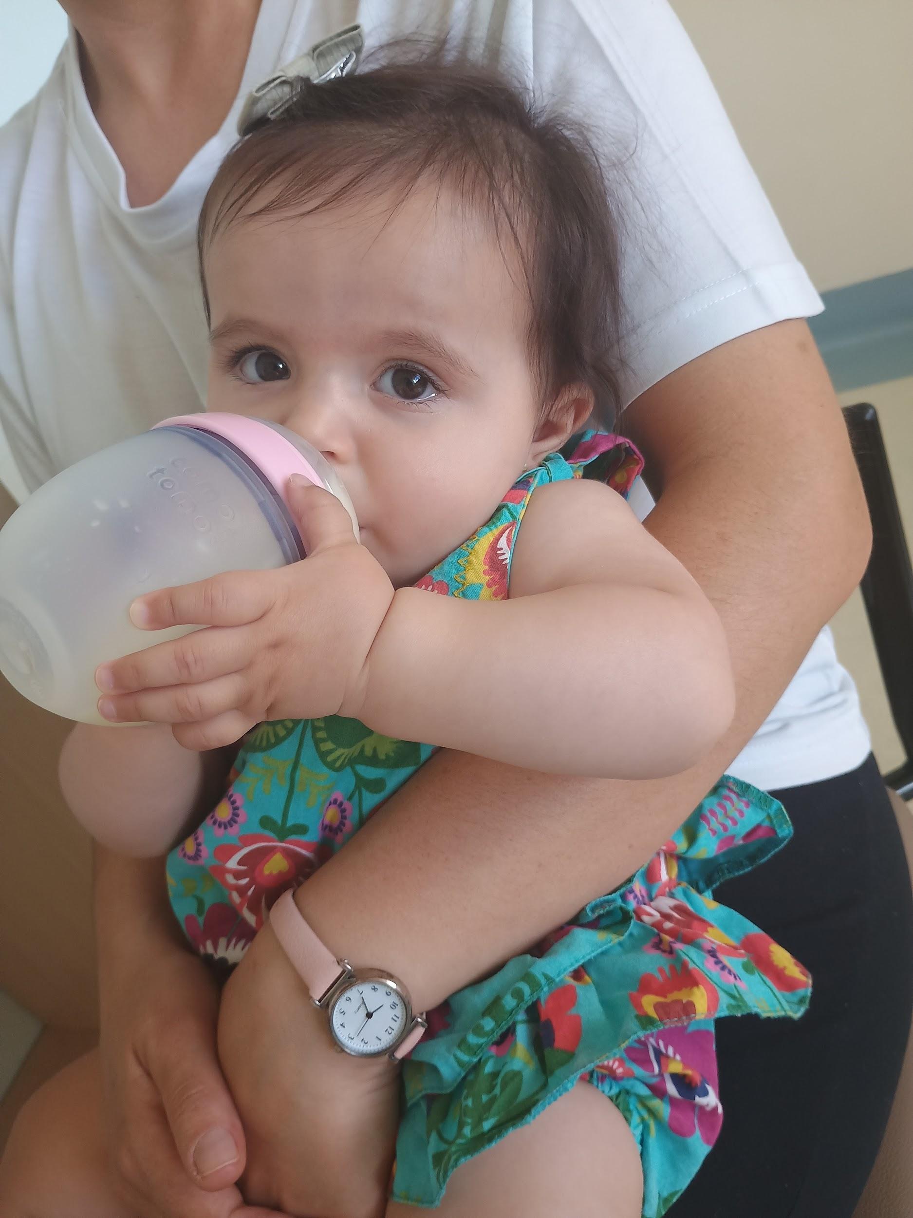 Nos primeiros dias no berçário, Pérola se alimenta apenas no colo da mãe, com o leite materno, envolta pelo calor e conforto que só aquele gesto oferece. Chegar ao berçário trouxe o desafio de conhecer a mamadeira, mesmo cheia do mesmo leite, um objeto que ainda parecia estranho para ela.