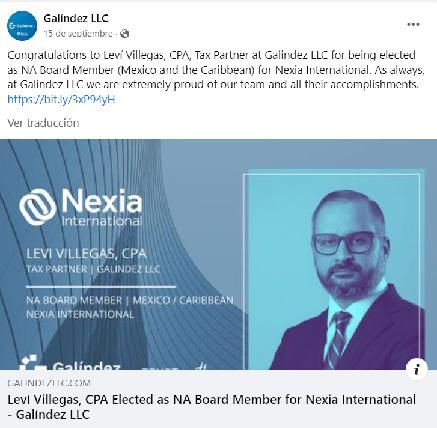 El CPA Leví D. Villegas Fiol fue electo recientemente como Miembro de la Junta de NA de Nexia International.