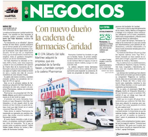 El CPA Gilberto Del Valle Martínez sigue solidificando su faceta de joven empresario por medio de la adquisición de la cadena de farmacias Caridad.