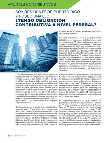 SOY RESIDENTE DE PUERTO RICO Y POSEO UNA LLC, ¿ TENGO OBLIGACIÓN CONTRIBUTIVA A NIVEL FEDERAL?