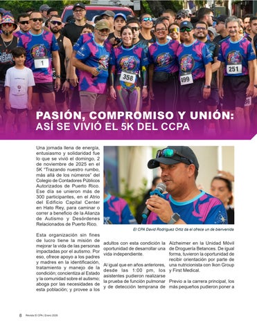Una jornada llena de energía, entusiasmo y solidaridad fue lo que se vivió el domingo, 2 de noviembre de 2025 en el 5K “Trazando nuestro rumbo, más allá de los números” del Colegio de Contadores Públicos Autorizados de Puerto Rico. Ese día se unieron más de 300 participantes, en el Atrio del Edificio Capital Center en Hato Rey, para caminar o correr a beneficio de la Alianza de Autismo y Desórdenes Relacionados de Puerto Rico.