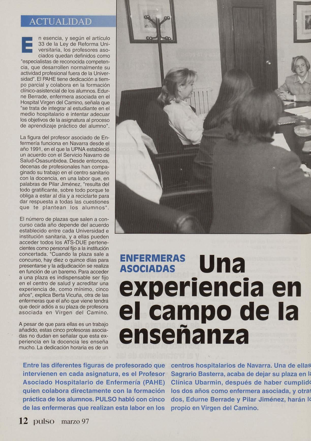 En fermeras Asociadas: una experi en c ia en el campo d e la enseñan za