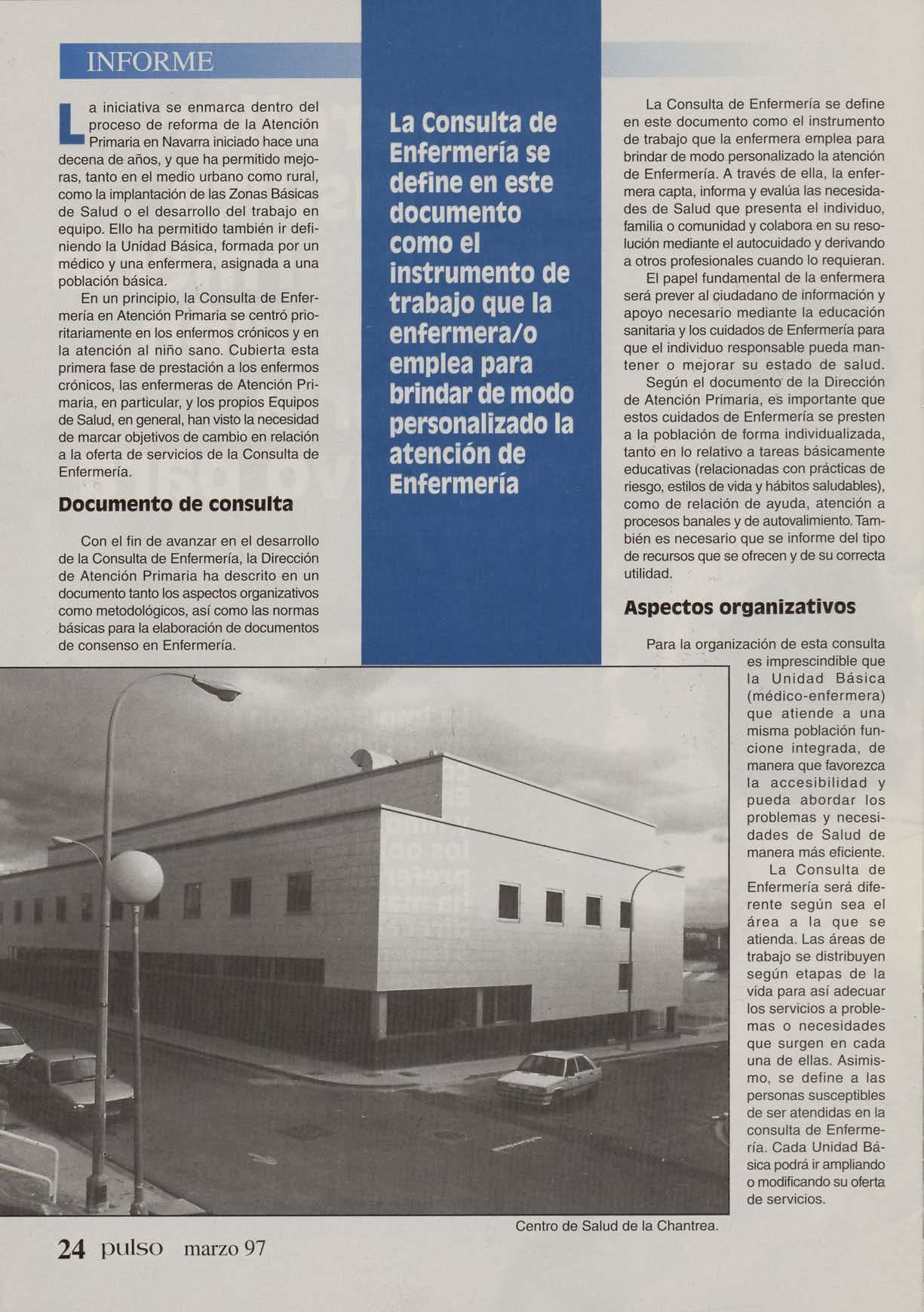 La iniciativa se enmarca dentro del proceso de reforma de la Atención Primaria en Navarra iniciado hace una decena de años, y que ha permitido mejoras, tanto en el medio urbano como rura l, como la implantación de las Zonas Básicas de Sa lu d o el desarrollo del trabajo en equipo. Ello ha permitido también ir definiendo la Unidad Básica, formada por un médico y una enfermera, asignada a una población básica.