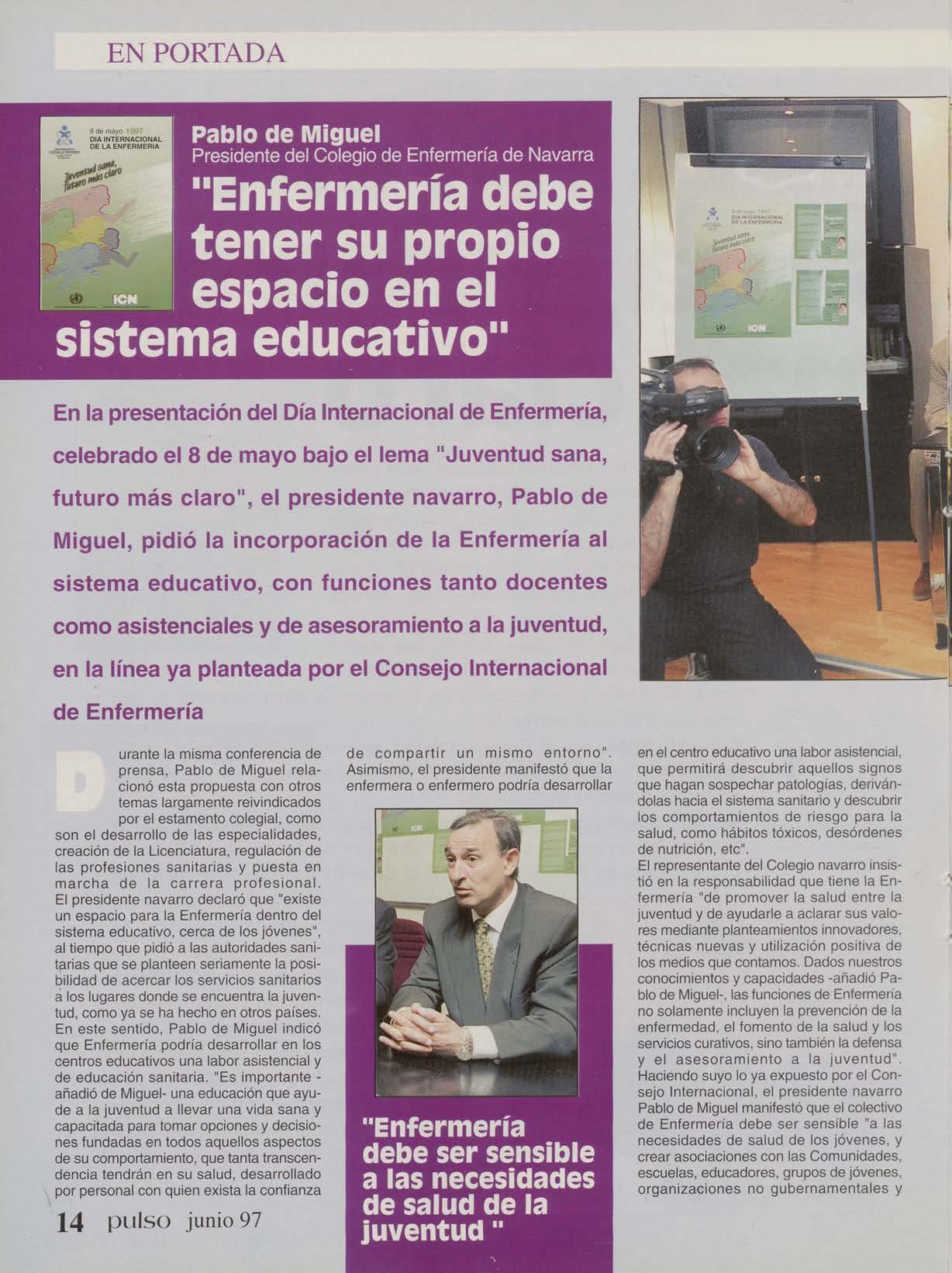 Pabl o de Migue l Presidente del Colegio de Enfermerfa de Navarra