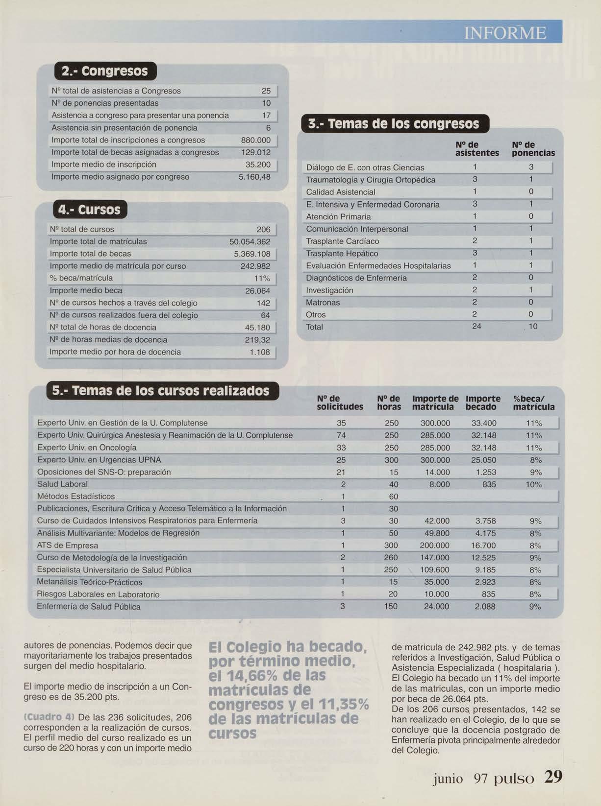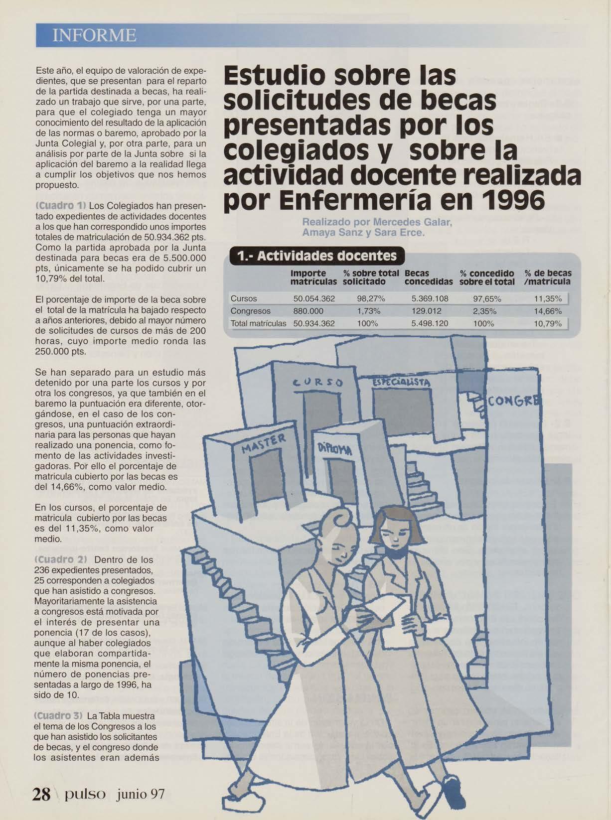 Estudio sobre las solicitudes de becas presentadas por los colegiados y sobre la actividad docente realizada por Enfermería en 1996