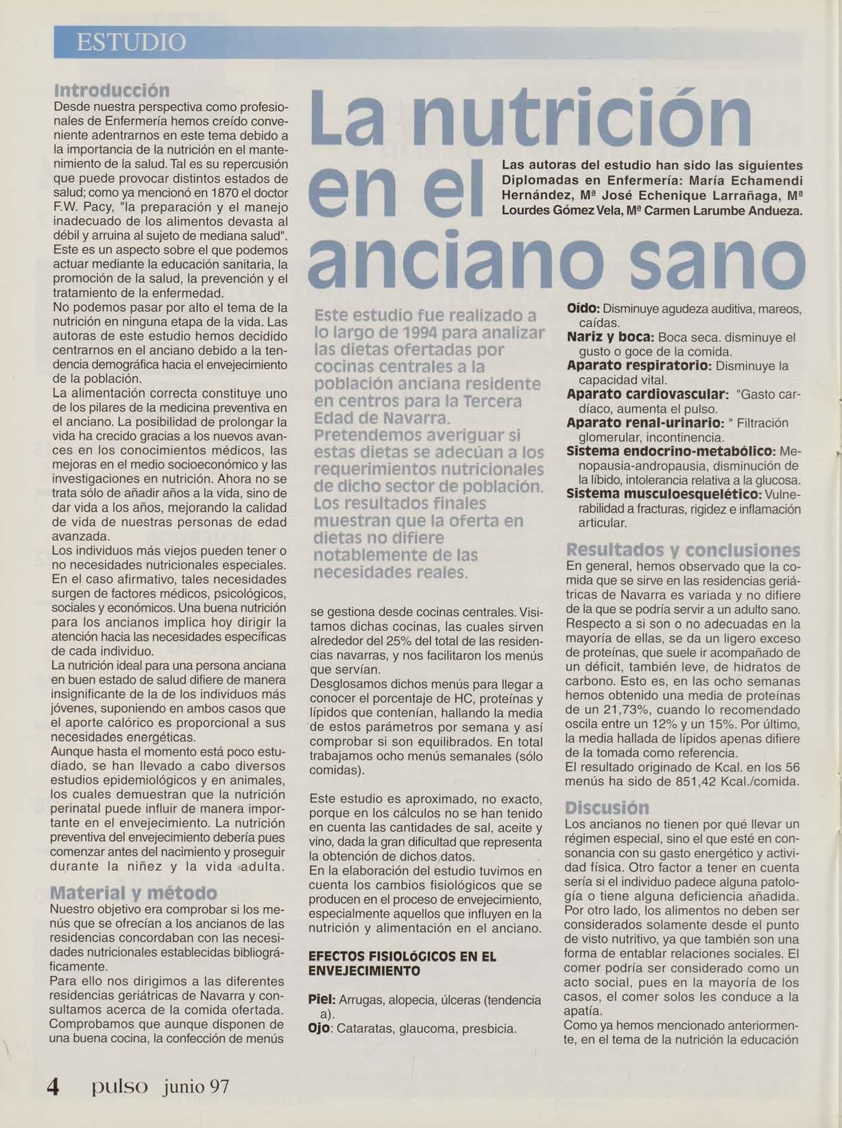 Las autoras del estudio han sido las siguientes Diplomadas en Enfermería : María Echamendi Hernández, MU José Echenique Larrañaga , M A Lourdes Gómez Vela , M6 Carmen Larumbe Andueza