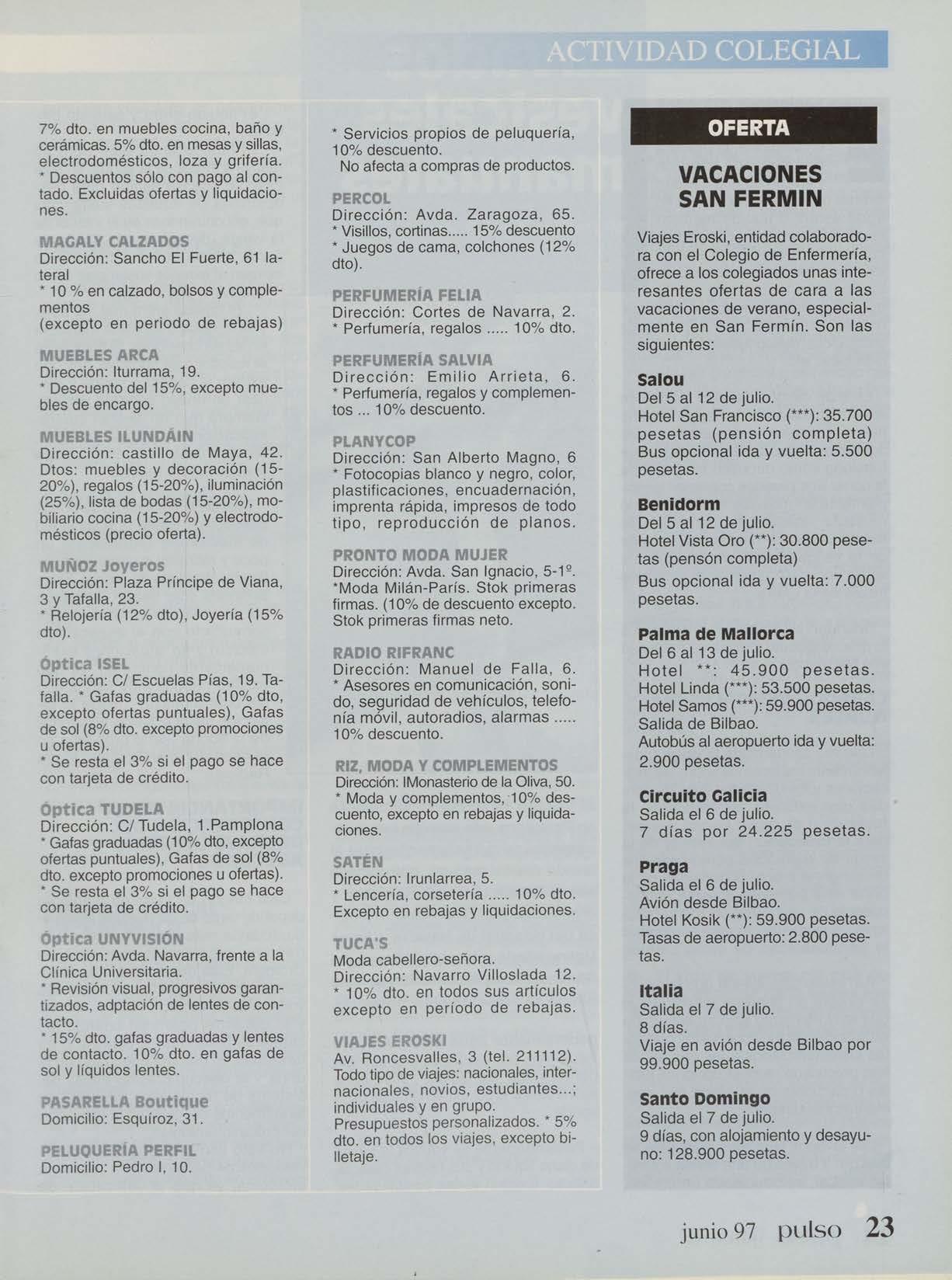 Publi c ida d: Colegio Oficial de Enfermería (Pintor Maeztu, 4- 1°A. Pamplona)
