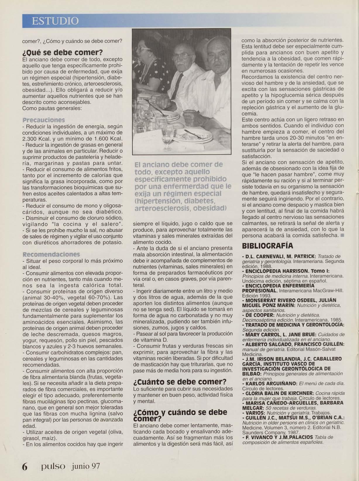 La alimentación correcta constituye uno de los pilares de la medicina preventiva en el anciano. La posibilidad de prolongar la vida ha crecido gracias a los nuevos avances en los conocimientos médicos, las meJoras en el medio socioeconómico y las Investigaciones en nutrición. Ahora no se trata sólo de añadir años a la vida, sino de dar vida a los años, mejorando la calidad de vida de nuestras personas de edad avanzada.