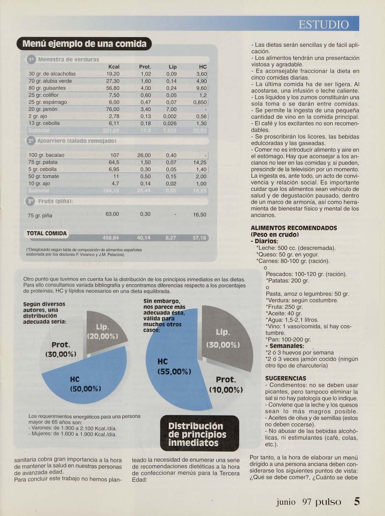 teado la necesidad de enumerar una serie de recomendaciones dietéticas a la hora de confeccionar menús para la Tercera Edad: