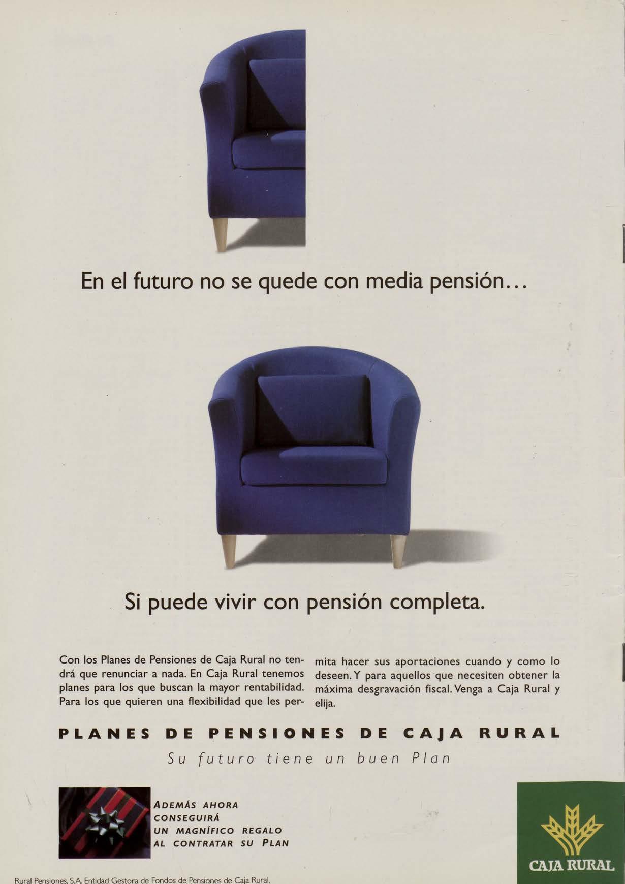 Con los Planes de Pensiones de Caja Rural no ten- mita hacer sus aportaciones cuando y como lo drá que renunciar a nada En Caja Rural tenemos deseen. Y para aquellos que necesiten obtener la planes para los que buscan la mayor rentabilidad. máxima desgravación fiscal. Venga a Caja Rural y Para los que quieren una flexibilidad que les per- elija.