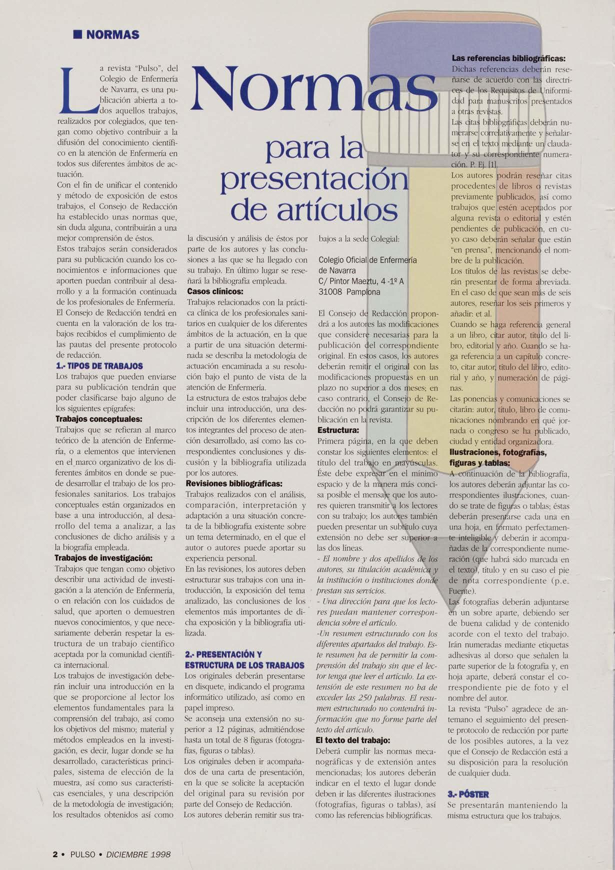 Con el fin de unifiGir d mntcnido } método dt• t·xposi(:IÓn de l'.'>tos trabajos, el ConM.'IO de Hcd.tcdón h:1 estab lecido unas nonna-; que, sin duda alguna, contrihuir.í n 1 una mejor comprl.'nsión de éMos. Estos trabajos M.'f<Ín mnsider:tdos p:1r.1 Sl l publímci6n t·unndo los co nocimiento.'> e informadont•s CfUt' :.tponen putxlan c<mtribuir al de.-.arrollo y a la formación mminuad:1 de los profesionales tk l'nti:rmería.