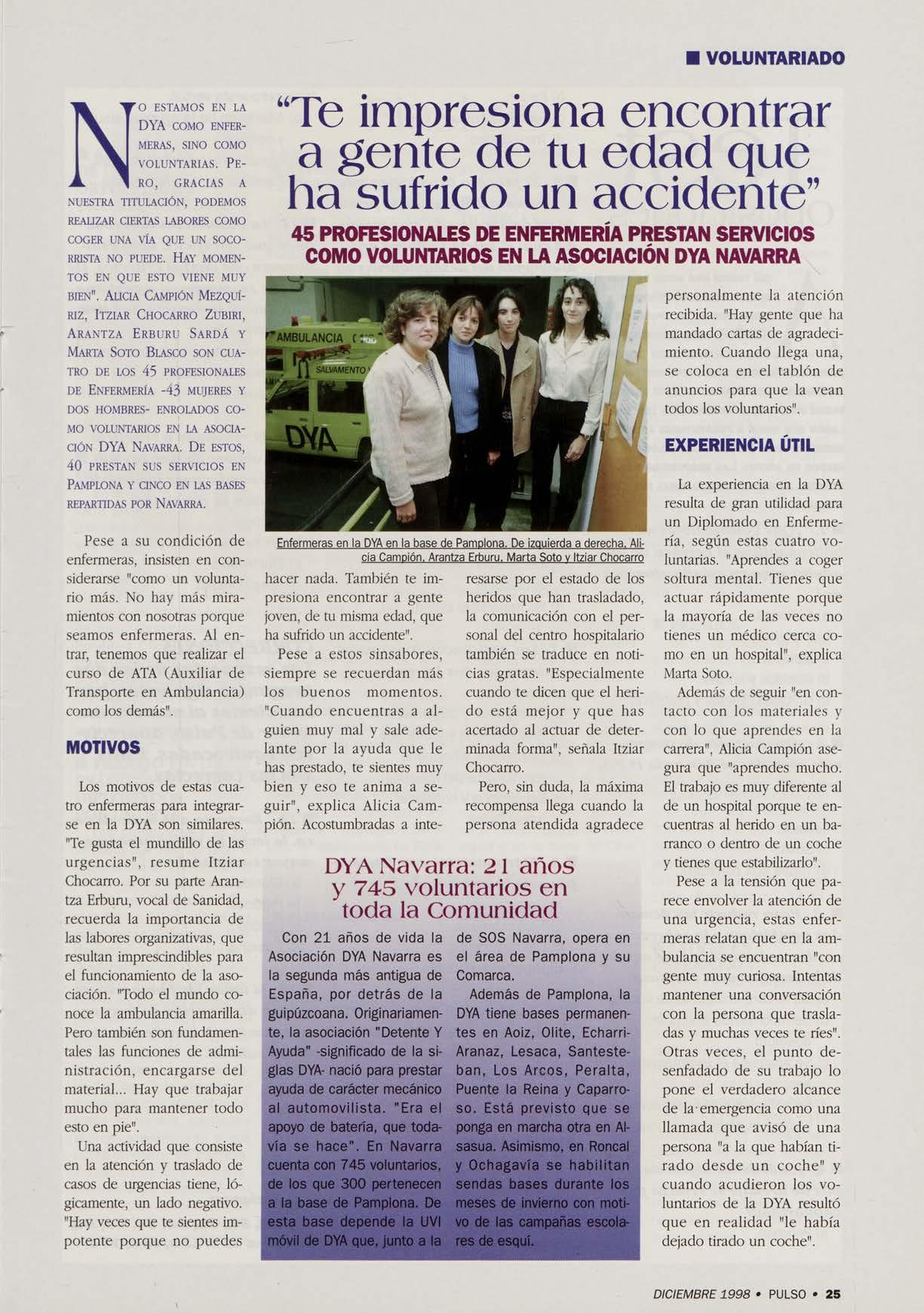 fesionales de Enfermería y Auxiliares ele Transporte que desarrollan su trabajo en el ámbito de las urgencias. A la delegación nava rra de esta sociedad penenecen 34 Diplomados Universitarios en Enfermería