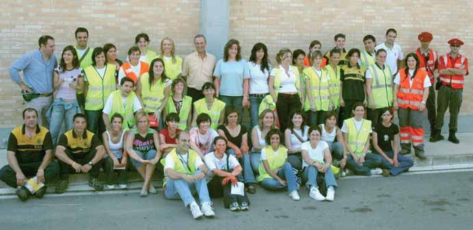 En el simulacro tomaron parte alrededor de 60 personas. Además de la mayoría de los 36 alumnos que han asistido al curso, intervinieron vehículos y personal de la Cruz Roja, DYA, Ambulancias San Miguel, y la Policía Foral. Estaba prevista la presencia de los bomberos, que no pudieron participar al tener que acudir a sofocar un fuego forestal en la zona este de Navarra.
