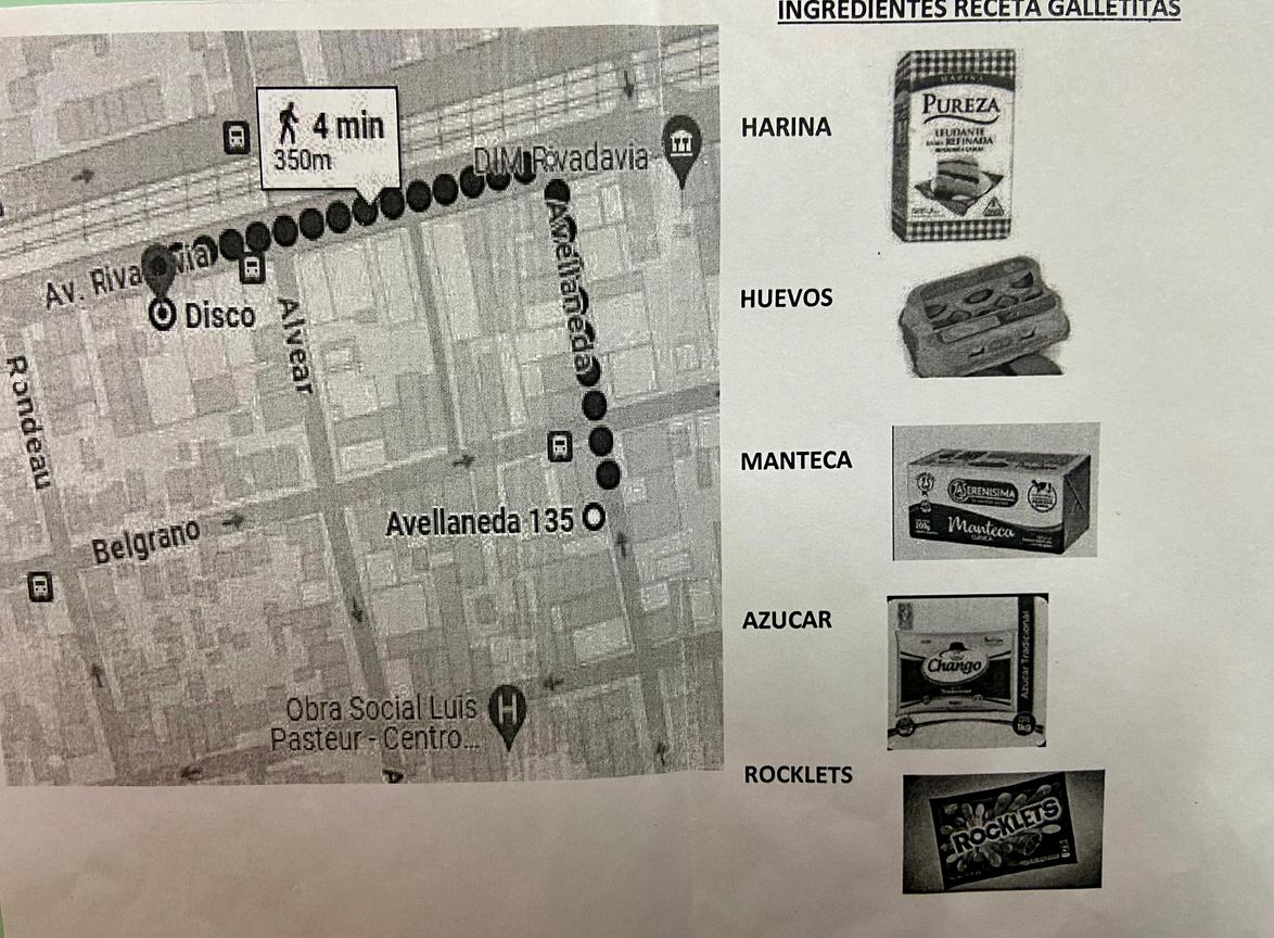 La actividad con Anabella, Macarena y Silvina, que estamos trabajando con ellas para tener autonomía, empezó en el colegio armando una salida al supermercado. Buscamos en Internet una receta de galletitas y los ingredientes para comprar. Antes de salir también buscamos en Internet cómo llegar caminando y llevamos el mapa El día estaba lindo pero fresco