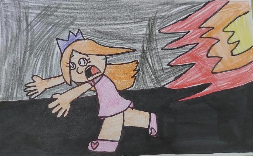 Una vez en un reino muy lejano había un pequeño pueblo escondido entre las montañas. Allí vivía una princesa, la hija del rey y la reina. Era muy chiquita y se llamaba Roxana, le gustaba mucho bailar la música que tocaba la orquesta. Un día Roxana se escapó del palacio porque estaba nerviosa, y se fue a una cueva. En la cueva estaba todo oscuro y frío. La princesa Roxana entró y tenía mucho miedo. Se quedó parada y escuchó gruñidos. Estaba muy asustada cuando apareció un dragón azul que salió volando con sus alas grandes. Roxana corrió a un lado pensando que se le iba a comer, pero el dragón lanzó fuego y se fue al palacio del rey y la reina. Los guardias salieron preocupados por el dragón. El rey no sabía qué hacer, pero Roxana llegó corriendo muy rápido y les dijo que lo dejaran porque ella sabía dónde vivía. Pero los guardias tiraron piedras y el dragón asustado se fue a esconder otra vez a su cueva