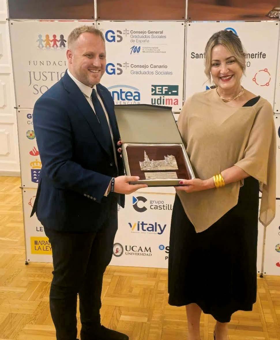 El delegado de la ONCE en Andalucía, Ceuta y Melilla, Cristóbal Martínez Fernández, recogió el galardón en nombre de la organización, expresando su agradecimiento al Consejo Andaluz de Graduados Sociales. Martínez dedicó este reconocimiento “a los hombres y mujeres que hacen posible que la ONCE y el Grupo Social ONCE sean hoy un referente de justicia social en España y un ejemplo de modelo social para el mundo”. Y reivindicó la figura de los graduados sociales “más importante aún en los tiempos en los que estamos inmersos, sometidos a cambios vertiginosos, y tan necesitados de certidumbres frente a las incertidumbres y las amenazas. Nos une la defensa del bien común y os necesitamos con más fuerza que nunca, más formados que nunca y más comprometidos que nunca, porque vuestra entrega y compromiso nos hace mejores como sociedad”.