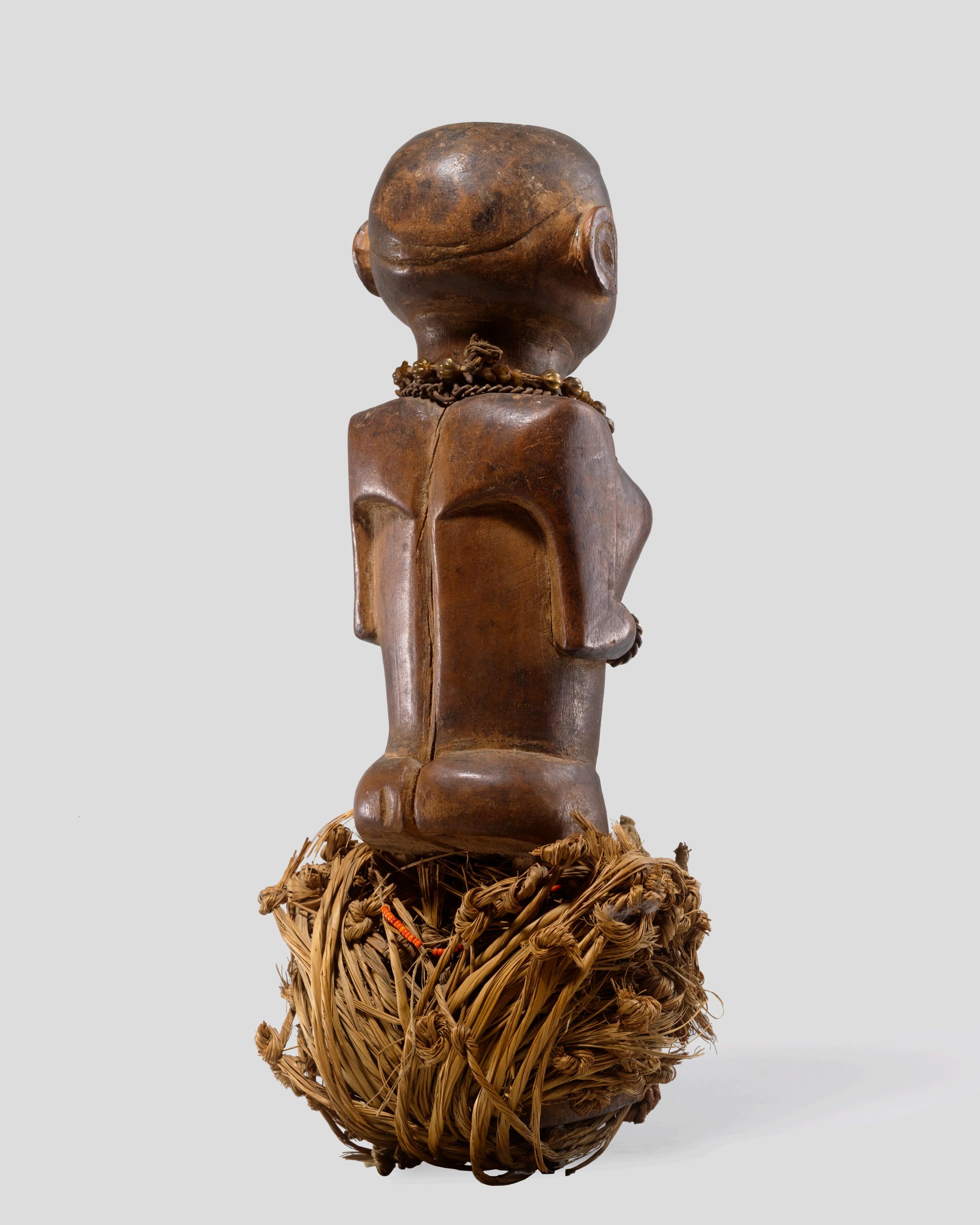 My hope in this show is to honor each woman from the above portrait From the regal stature of a Luba-Zela kihona stool, to the intricate collaboration of an important Dan gunyege mask, each work serves as a testament to the intrinsic connection between women and the spiritual, social, and cosmological realms. In the Yoruba tradition of Nigeria, a rare female scepter of the god Eshu (normally presented as male) emerges as a potent symbol of maternal authority and spiritual prowess. Masterfully carved and with a deep patina from use, this scepter would have been wielded by devotees in ceremonies honoring Eshu, the divine trickster and messenger of the gods. Carved in exquisite detail and adorned with various bishimba, beads, and other accouterments of power, a superb nkisi figure from the Bwende culture of the Congo stands as both guardian and interpreter of the spiritual realm, its potent presence imbued with protective powers and maternal energy.