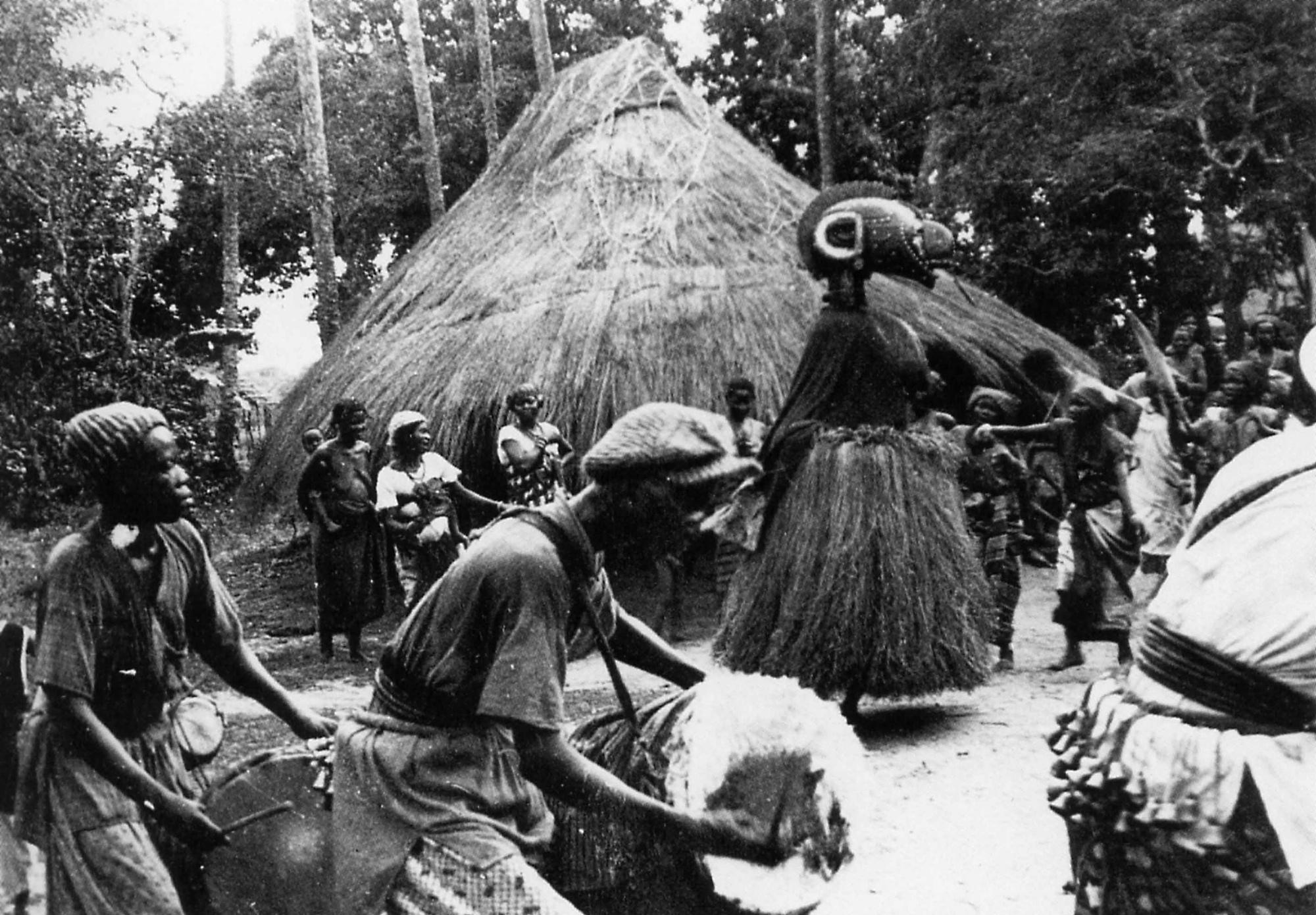 Driven from their original lands of Fouta Djallon, forced into exile from the 15th to the 18th century due to Islamized Fulani invasions, the Baga settled in scattered groups in the north of the Guinea coast. The Baga oral tradition, recounts their arrival on the coast of Guinea, their need to establish, reconstitute their policies, laws and their society. In this process of reinvention, going hand in hand with the appropriation of new lands, it appeared fundamental and essential to recreate an artistic form representing the quintessence of women: idealized beauty, a founding icon, a guardian and protective image and symbol of the nurturing mother images with whom they sought refuge for the fruitfulness and for the fertility of the earth. According to the Temne people, “the world was created by the spirit of the woman, she is the origin of life” (Lamp, 1982, p.244-283). Thus, wearing the mask was synonymous with carrying life, to the point that when giving birth, according to Sayers (1927: 111) women would say "I po’ sara a-ron," which literally translates to "I have carried the mask on my head." Initially, according to the testimonies of the Pukur, corroborated by the consultants of Sitemu, the Nimba mask was singular and sacred; it was kept in a place especially dedicated to it, where it received sacrifices. Later on, the original Nimba was reproduced and used for various ceremonies. The dancer of the sacred mask (Elder, Christian, Era, Pukur, 1986) performed a rhythmic, dynamic dance with "calm and vigorous steps at the same time, sometimes swirling and delicate." (Lamp, 1982). The dance was accompanied by jerky rhythms, drums called sëngbe, sanda castanets, and songs.