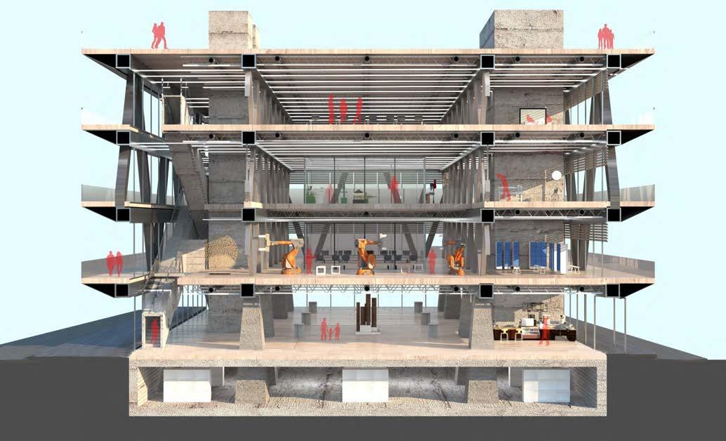 Our goal is to create a focal point in Lowell that showcases the artwork created by makers. We also want this design to be an experience for the community to enjoy. We believe it’s important that each maker space has a visual connection to the city, framing a greenway, the river, nearby landmarks, and Lowell so it can enhance their work. We imagine this intervention to be similar to a monument, so we are including spaces that allow pedestrians to engage with the creations. We want to build a new structure that will change the Lowell Community for the better.