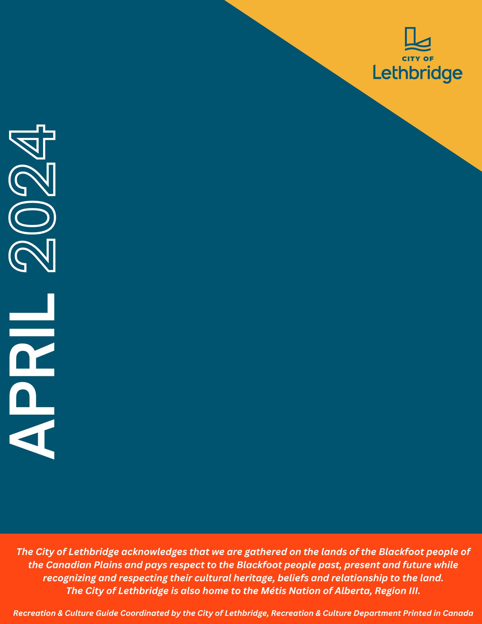 AQUATICS About the Pools 5 Admission Information .................................... 6 Advanced Programs 7 Nicholas Sheran Schedule ............................... 8 Stan Siwik Schedule 9 Stan Siwik Schedule ......................................... 10 Fritz Sick Schedule 11 Registration Information ................................ 12 ARTS, CULTURE & HERITAGE Casa ...................................................................... 14 SAAG .................................................................... 15 Galt Museum ..................................................... 16 Lethbridge Public Library ............................... 17 Sports Council ................................................... 17 COMMUNITY SUPPORT SERVICES Nord-Bridge Senior Citizen Assoc 19 Family Centre ..................................................... 19 LSCO 20 Volunteer Lethbridge ....................................... 21 HELEN SCHULER NATURE CENTRE Programs & Events .................................... 23-28 LETHBRIDGE COLLEGE Lethbridge College .......................................... 29 LETHBRIDGE HERALD Lethbridge Herald Ads ............................. 31-34 DID YOU KNOW? Historical Society .............................................. 13 Lethbridge Arts 18 United Way ........................................................ 22 Be Fit for Life 30 Lethbridge Family Services ........................... 35 Parks 39 Lethbridge Sports Council ............................. 49 RECREATION People in Sport ................................................. 36 Alberta Summer Games ................................. 37 Trail Running Festival 38 PUBLIC INFORMATION & EVENTS ACFA régionale de Lethbridge ..................... 40 Cemetary Services 40 Rocky Mountain Turf Club............................. 40 Jam for Jax 41 2024 Canada Day Applications ..............42-43 Picnic Shelter Map 44-45 Booking Deadlines .......................................... 46 Sports Fields ..................................................... 46 Legacy Pavilion ................................................. 47 Yellow Fish Program........................................ 48 SKATING & HOCKEY Skating Programs & Passes 50 Skating Schedule .............................................. 51 Learn to Skate 52 Jumpstart ........................................................... 52 UNIVERSITY OF LETHBRIDGE Information & Events ...................................... 53 CALENDAR OF EVENTS Yates Calendar of Events ................................ 54 Calendar of Events ........................................... 55