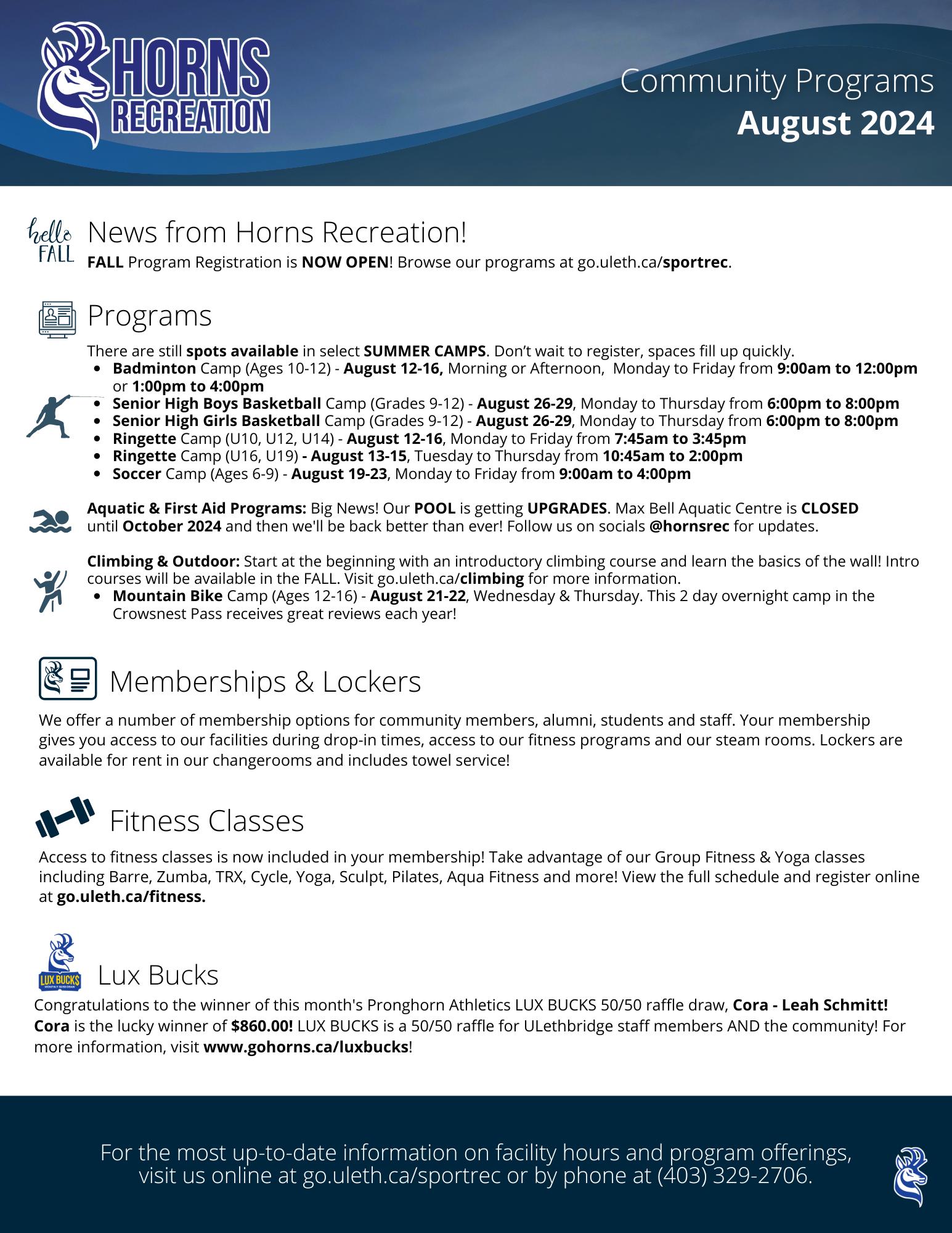 For those interested in attending local sport events, most are free to attend. The Lethbridge Sport Council maintains a Sport Event Calendar, which can be viewed here: https://bit.ly/lethsportevents or you can follow Lethbridge Sport Events on social media.