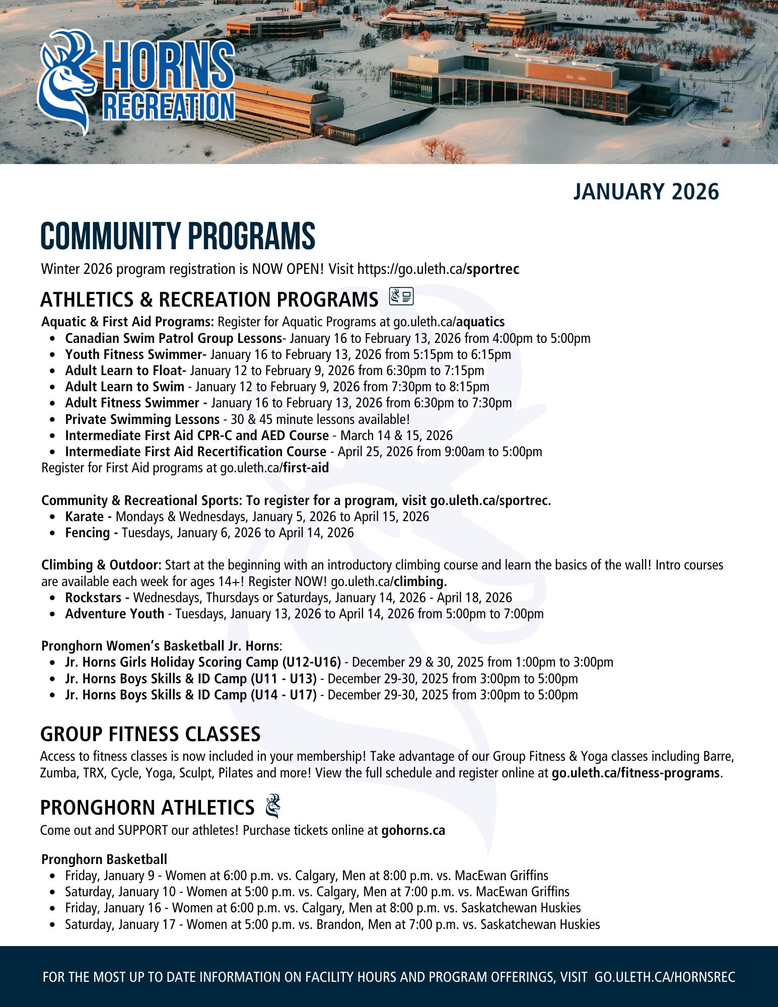 For more information on programs, schedules, fees, and FAQs, visit recex.ca/Lethbridge or email us at leth@recreationexcellence.com.