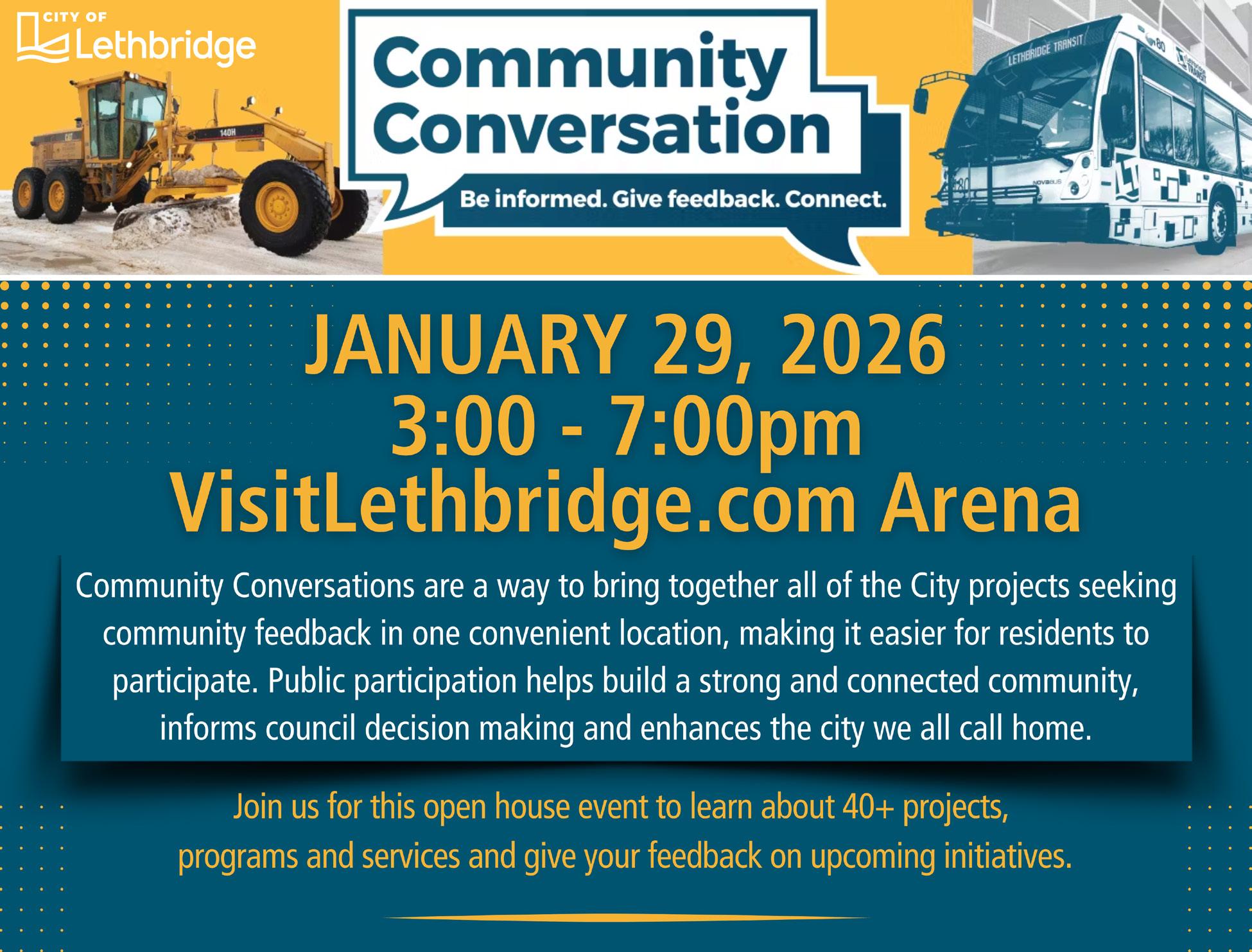 The City of Lethbridge acknowledges that we are gathered on the lands of the Blackfoot people of the Canadian Plains and pays respect to the Blackfoot people past, present and future while recognizing and respecting their cultural heritage, beliefs and relationship to the land. The City of Lethbridge offers respect to the Metis and all who have lived on this land and made Lethbridge their home.