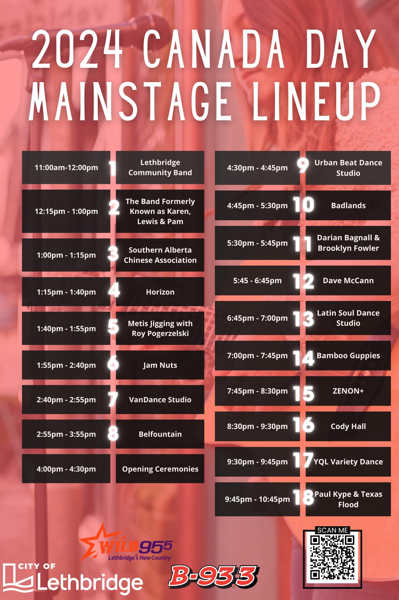 Join a community celebration for Canada’s 157th birthday on July 1, 2024! Events taking place at Henderson Lake & Galt Gardens. Activities include: Food trucks, Family-friendly activities including face painting and bouncy castles. Main stage entertainment with live music and dance performances. Free Transit All Day! Free Parking at Lethbridge Exhibition