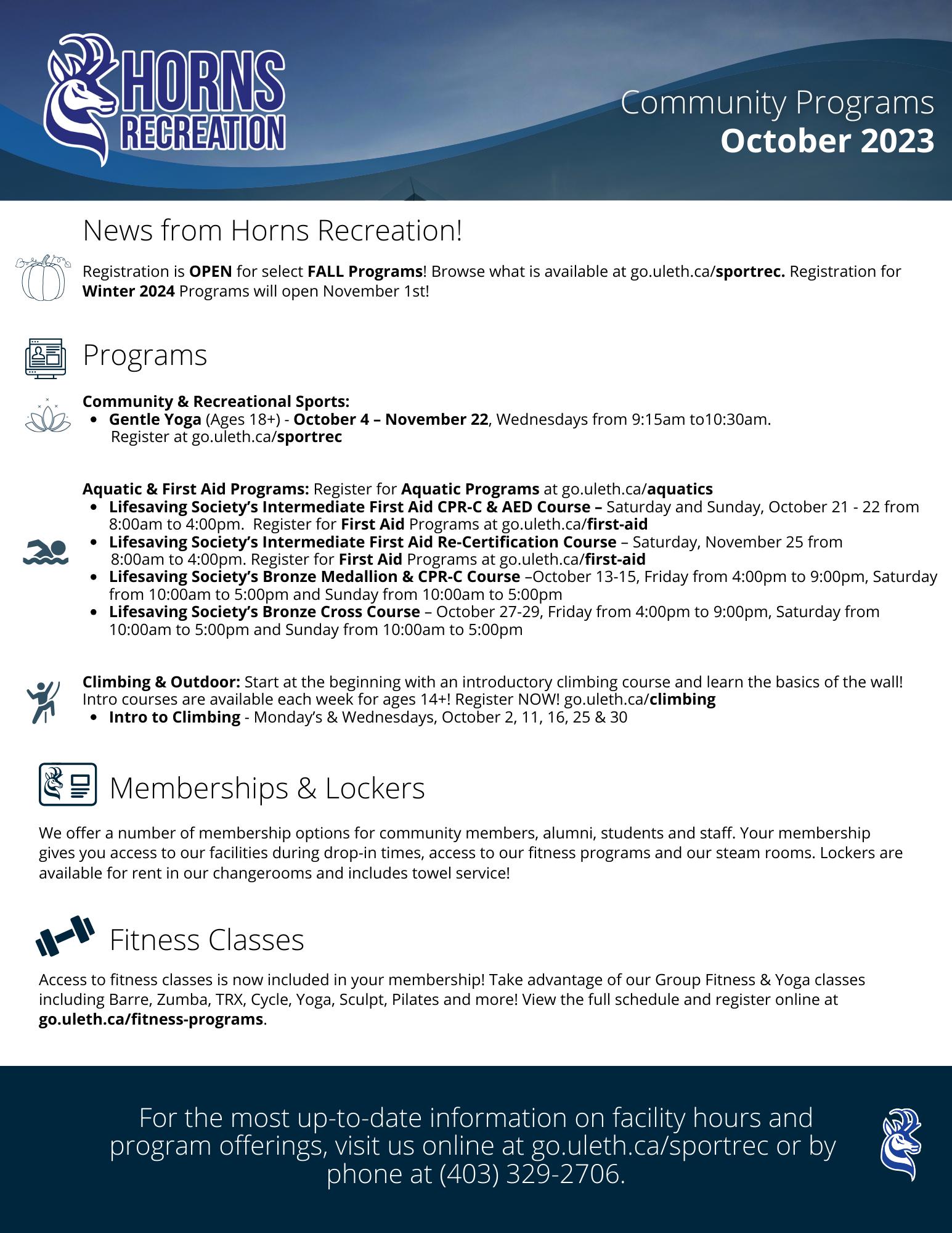 For more information please visit: www.leisure.lethbridge.ca or call 403-320-3111