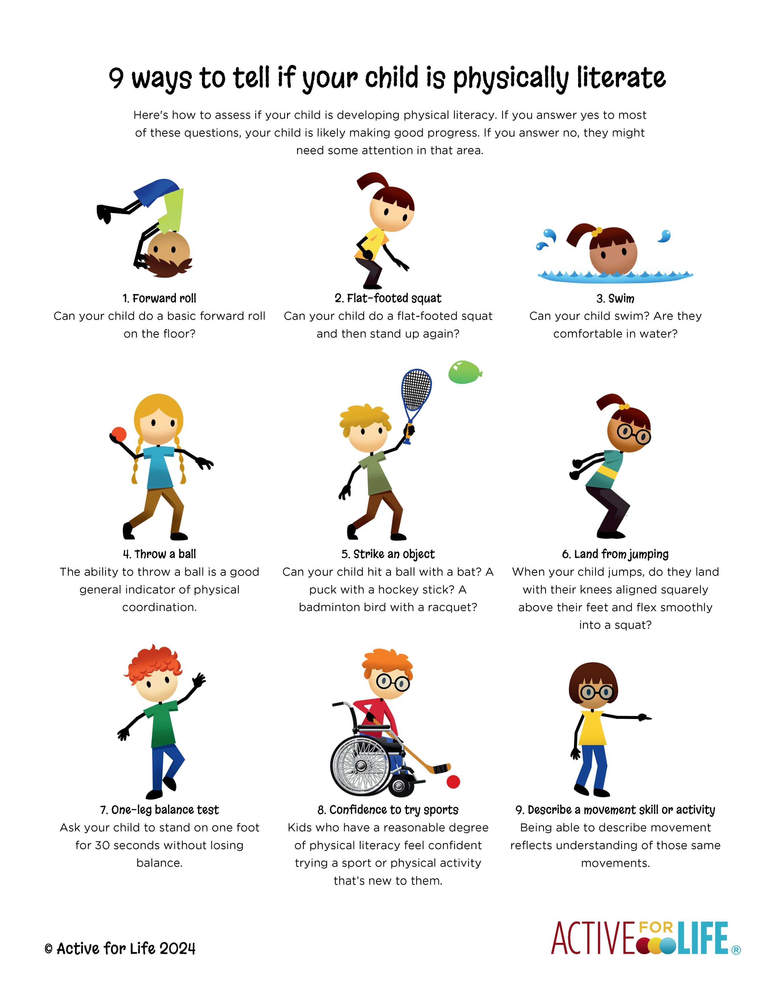 Here's how to assess if your child is developing physical literacy. If you answer yes to most of these questions, your child is likely making good progress. If you answer no, they might need some attention in that area.