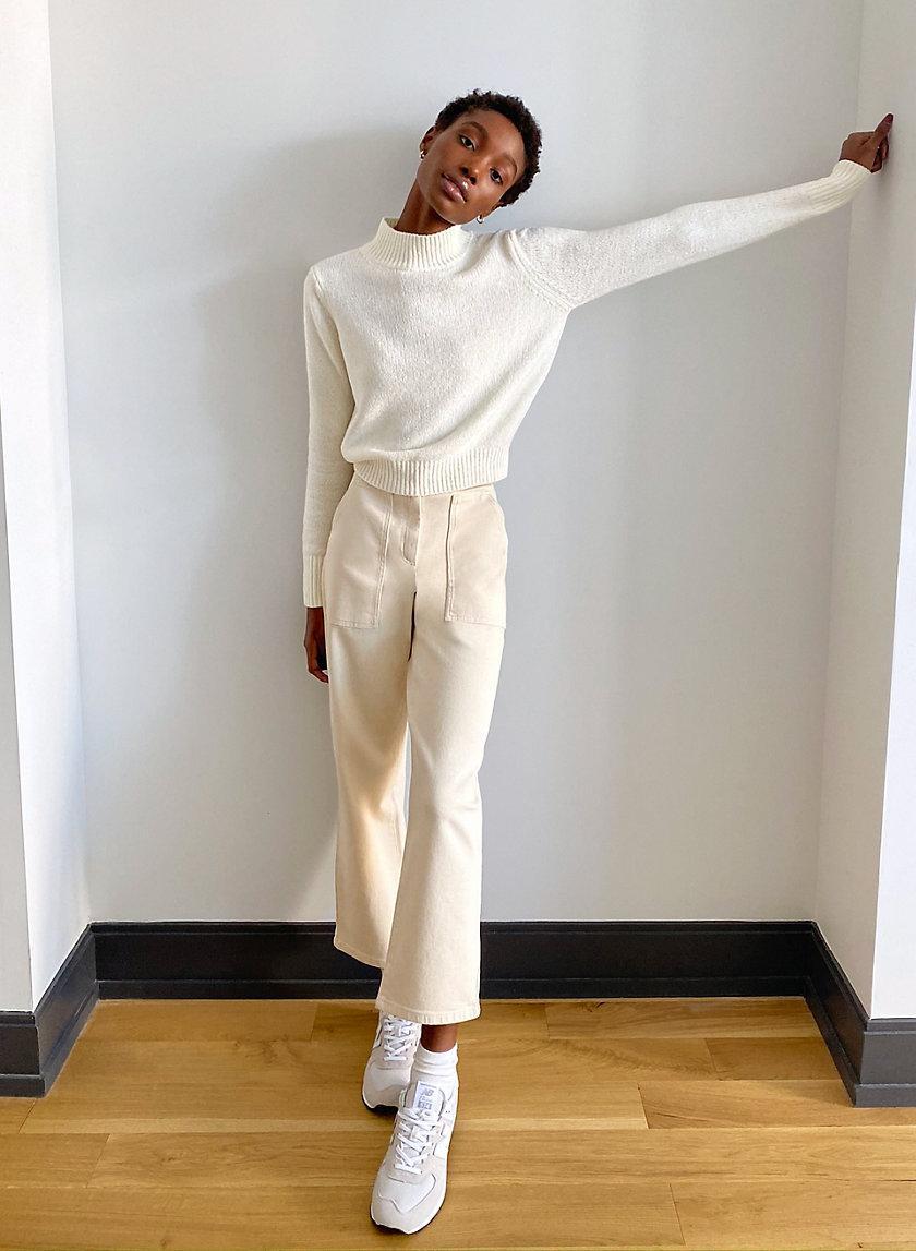 Club Monaco offers a turtleneck very similar to the cut and sew knit key item top.