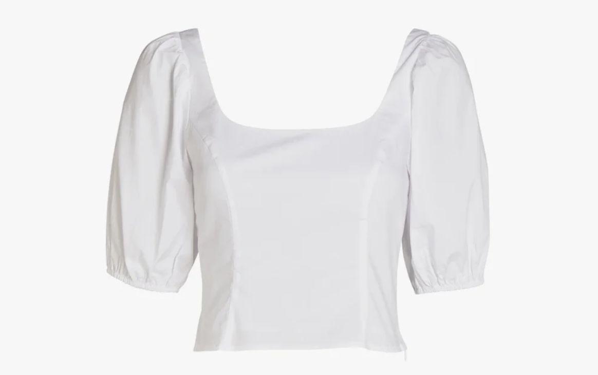 Vogue states that the puff sleeve trend is here to stay. The puff sleeve top can be reimagined in new ways every year. These tops from Intermix and Stories are featured on Vogue.