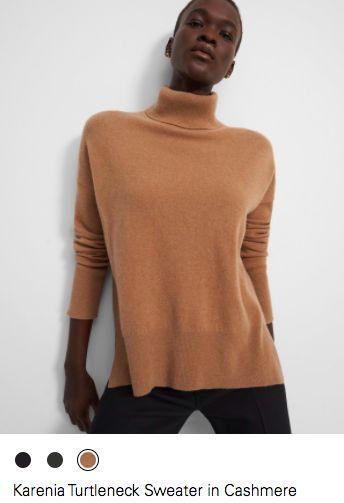 Theory: Various turtleneck sweaters are merchandised on aspirational brand Theory’s website.