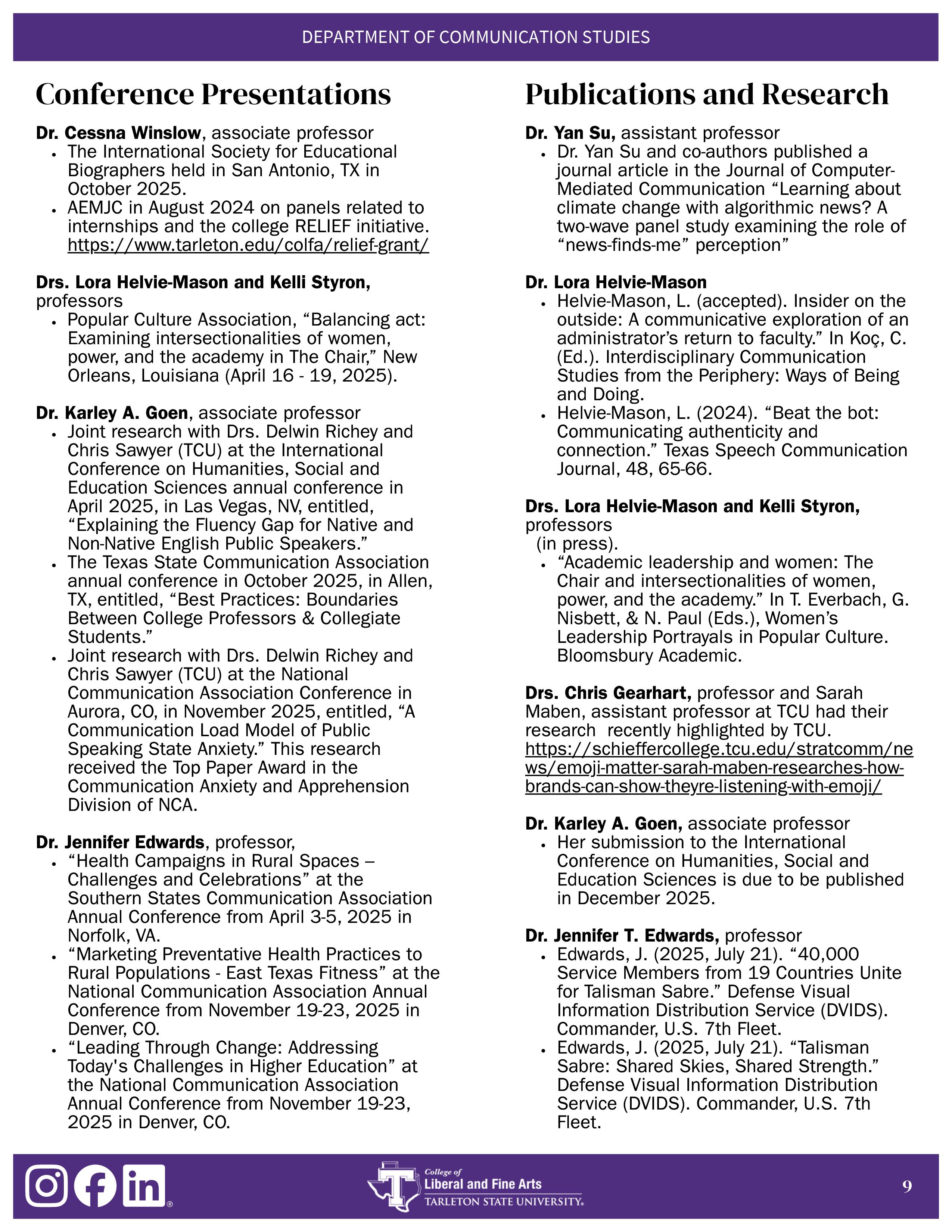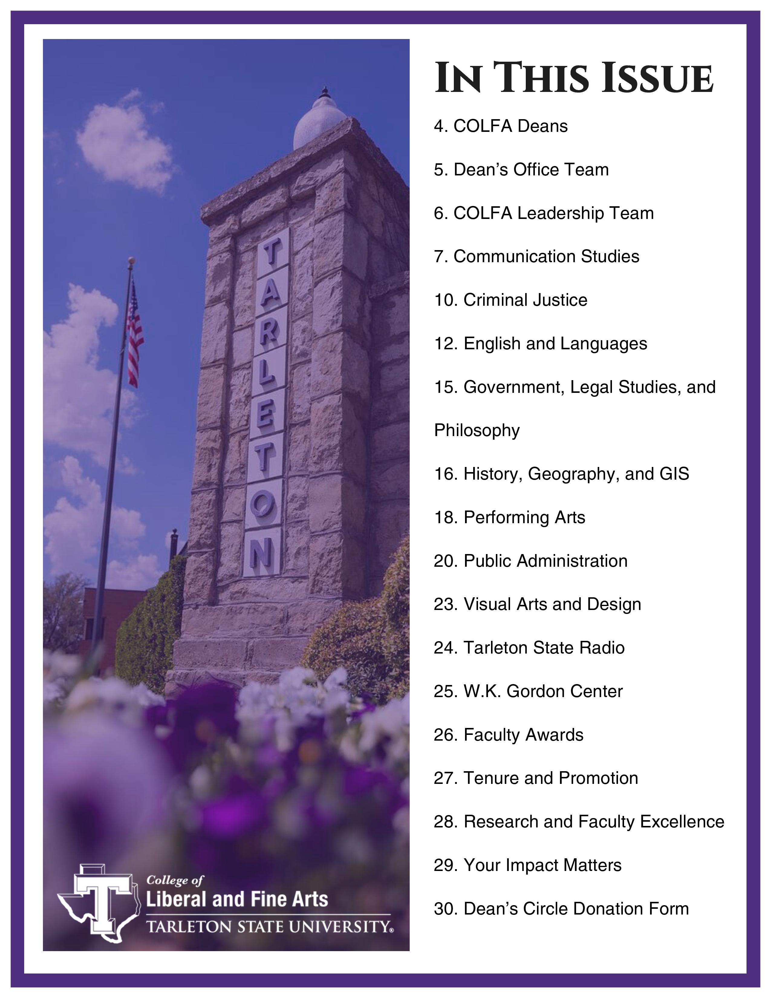 The official newsletter of the College of Liberal & Fine Arts, The Purple Record: Fall 2025 Edition, highlights the innovative teaching, artistic accomplishments, research advancements, and student narratives made possible through your support. It also provides a transparent view of the college’s evolving vision as our programs continue to grow and progress.