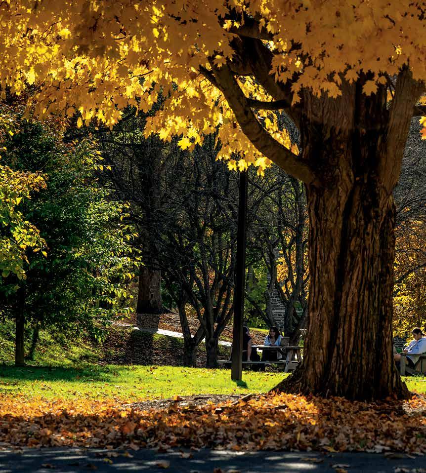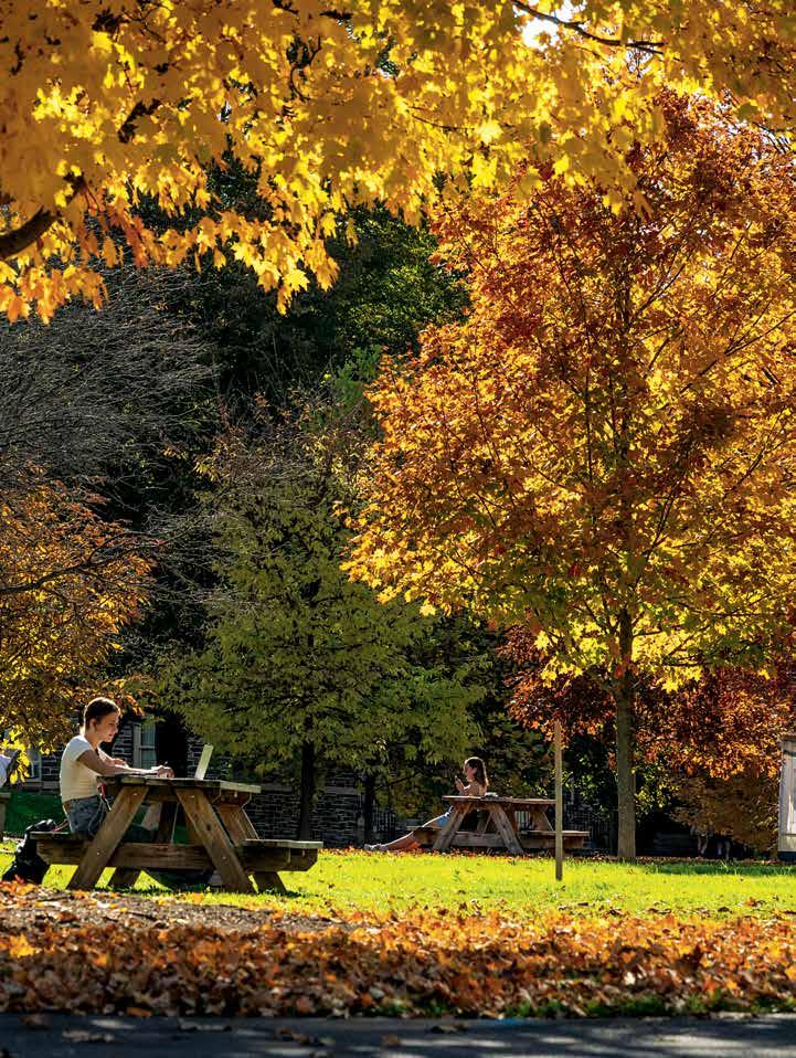It’s not hard to find a serene outdoor space to study on campus, especially in mid-October, when Hamilton’s fall foliage is at its vivid golden peak.