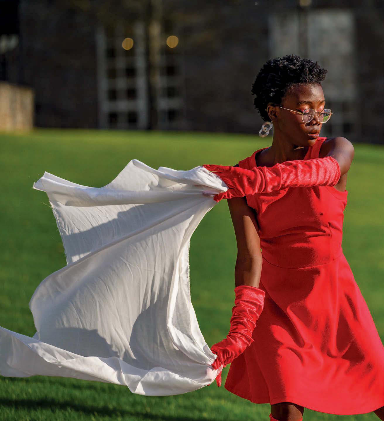 ’26 perform a dance choreographed by guest artist Esther Baker-Tarpaga. The dance production titled DIS/UNITY was the culmination of THEA 371: Contemporary Dance in Performance, taught by Professor Brian Stark. In addition to those class members (Lemon was one of them), students from around campus, like Hatch, joined in. The performance also featured live music and movement by students in Stark’s MUSI 208: Jazz Theory and Improvisation. look