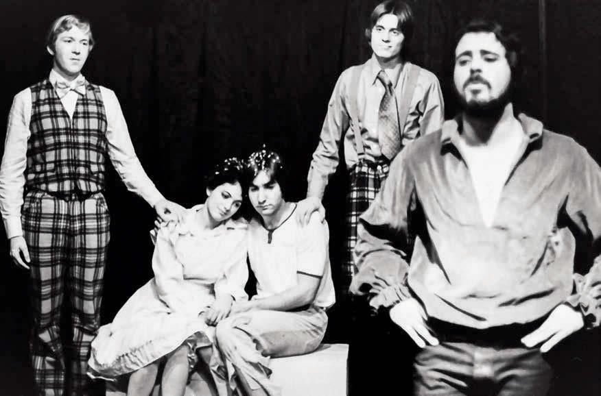 ’77; percussionist Fred Kaplan ’74; and Robert Anderberg ’77 on bass. Jonathan Slater ’77 did the lighting. I directed, and Colby devised the choreography. We began rehearsals right away, learning songs, dialogue, and stage directions, as well as creating our costumes and makeup. We put up mimeographed flyers around the campus announcing the show (and the grand admission price of 50 cents). We worked every day straight through until the last week of January when we gave four performances. To our delight, every night was standing room only. And to our even greater delight, audiences erupted in cheering applause and standing ovations after each show. That impressive response prompted Dean of Students Guy Martin ’57, MA’59 to ask if we could mount the show again for four performances during the