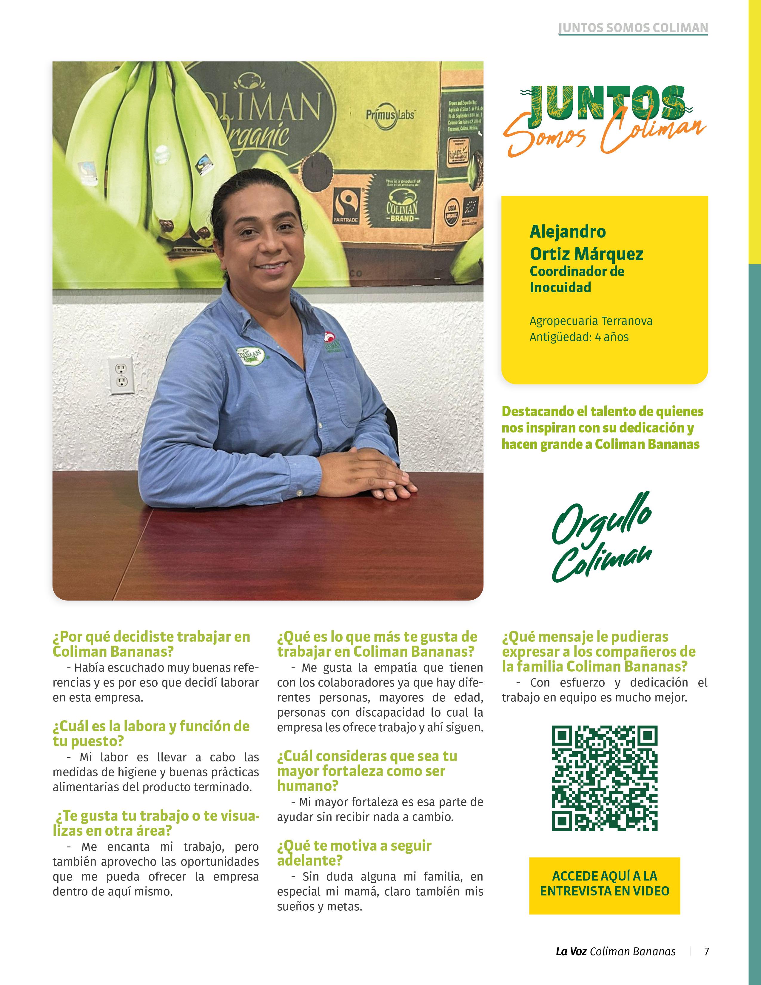 ¡Damos la bienvenida a La Voz Coliman Bananas No. 87! Conoceremos un poco de las experiencias de vida diaria en el ámbito profesional de algunos colaboradores, así como recordamos un mes dedicado a la concientización del cáncer de mama. Por otro lado, compartimos experiencias de personas que fueron ayudadas por nuestro fundador Don Jorge Aguilar Heredia.