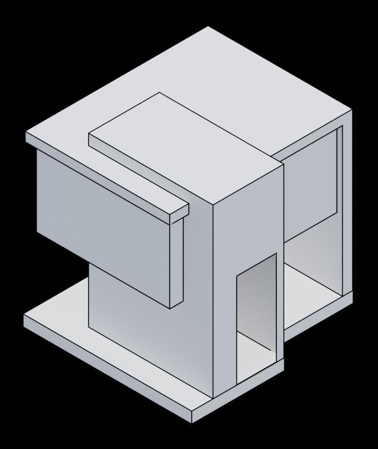 An early concept iteration aimed to intersect two rectangular forms, one form for vertical circulation and another as a destination. Later iterations attempted to create a less visually stark division between space for movement and rest.