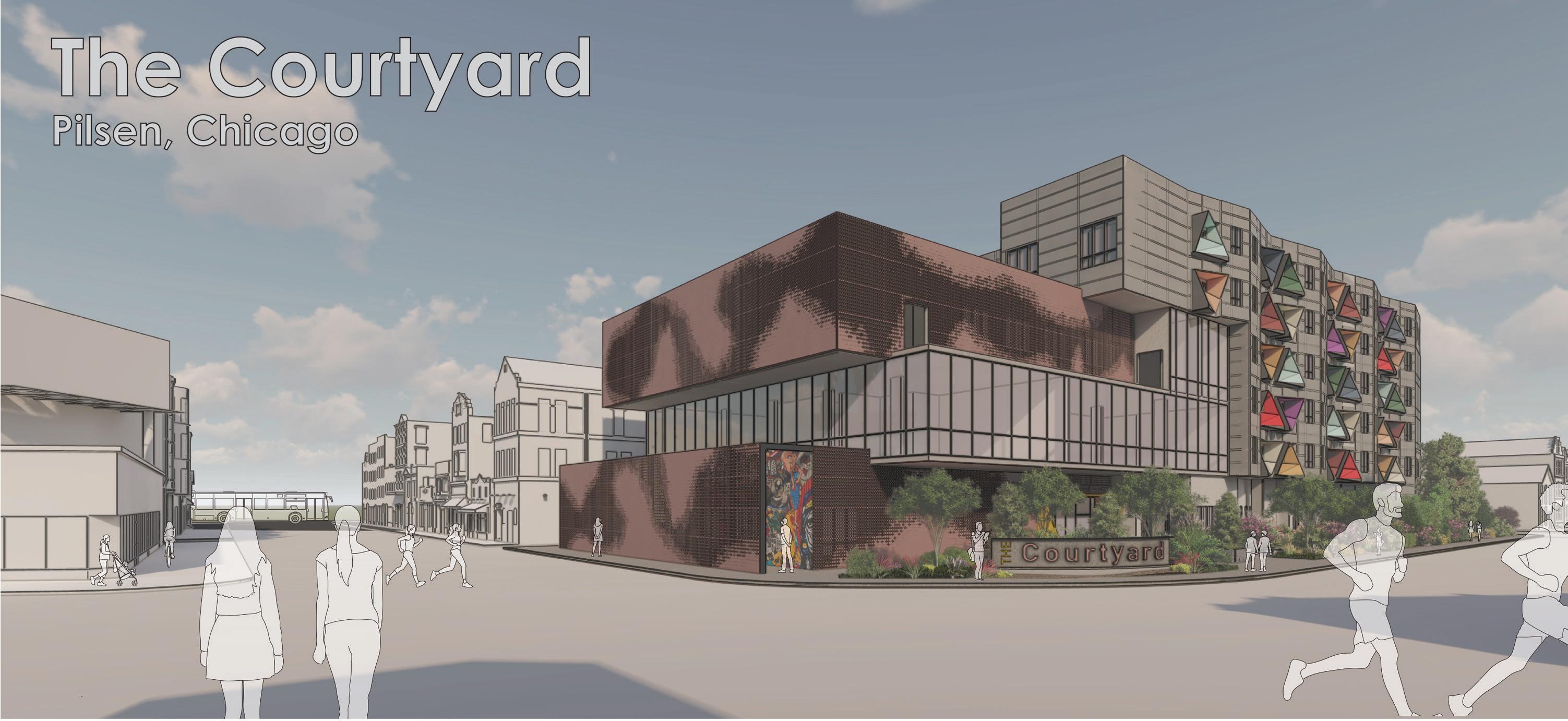This project focuses on the interaction of spaces within the site, as well as what exists around the site itself. These interaction moments are based on how the outside community members of Pilsen will feel and interact with the site, due to Pilsen having a intensely strong community relationship, as well as the interior programmable spaces interacting with each other between the library and residential portion. Cornered on the northwest point of the site is a busy intersection at W 18th St and S Loomis St, this point of interaction is what will draw