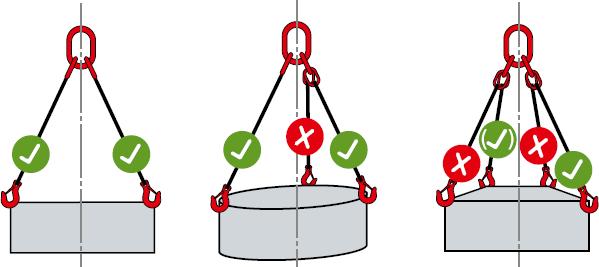 Wird die last mit einem drei oder viersträngigen Anschlagmittel anschlagen, so verteilt sich die Last nicht gleichmäßig auf alle Stränge.