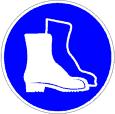 An Arbeitsplätzen, die mit diesem Gebotszeichen gekenn zeichnet sind, müssen Sicherheitsschuhe getragen werden. Die Auswahl des Fußschutzes richtet sich nach der jeweili- gen Tätigkeit und wird vom Unternehmer getroffen. Häufig ist die Benutzung von Fußschutz generell vorgeschrieben.