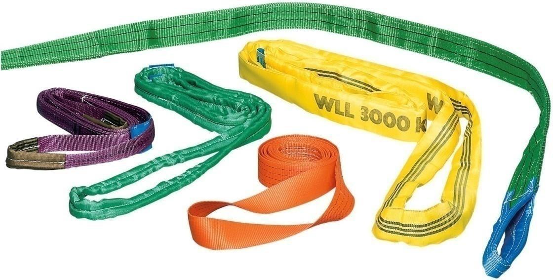 Aufgrund der unterschiedlichen Chemiefasern, aus denen sie hergestellt sind, haben Chemiefaserhebebänder und Rundschlingen spezielle Ei genschaften. Die für die bestimmungsgemäße Nutzung notwendigen Anga ben müssen aus einem farbigen Etikett hervorgehen. Textile Anschlagmittel haben einen 7 fachen Sicherheitsfaktor.