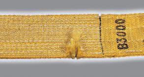 Polyester Hebeband (PES), erkennbar am blauen Etikett: Wärmebestän digkeit: 40°C bis + 100°C, gute Beständigkeit gegenüber den meisten mi neralischen Säuren, schlechte Beständigkeit gegen Laugen (deshalb nicht mit Seife waschen).