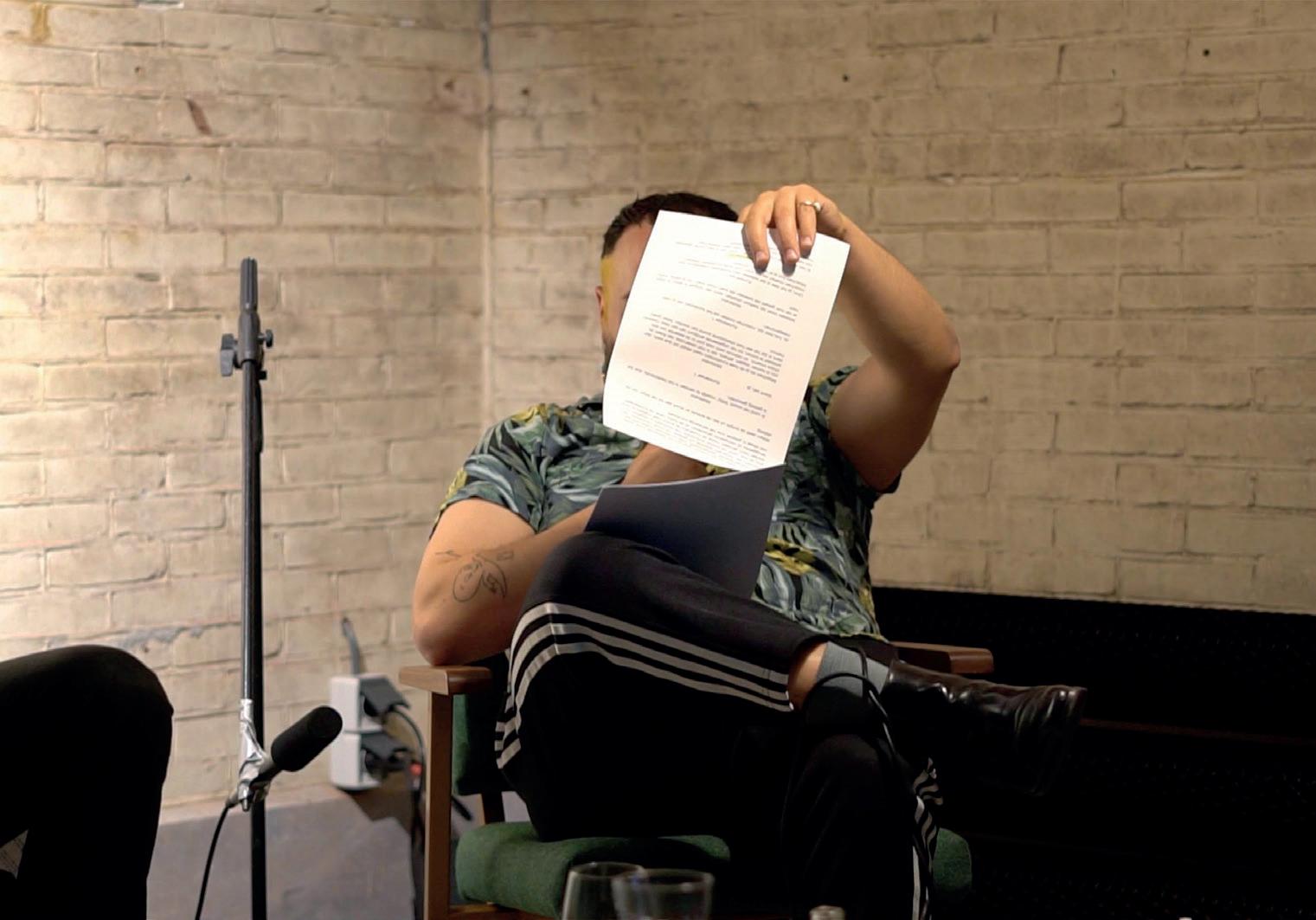 Na het buitengewone gespannen gesprek tussen Helmut Smit en Arash Fakhim was de performance wel heel bijzonder en geslaagd. Willem de Haan zette in deze performance de sprekers van de avond nogmaals aan het werk. Gedurende het gesprek had de Haan zoveel mogelijk het gesprek uitgeschreven als een soort script. Zowel de kunstenaars als de moderator moesten vervolgens hun eigen uitgesproken teksten opnieuw voorlezen uit het script van De Haan alsof zij acteurs waren. De spanning gedurende dit voorlezen leidde zowel to nieuwe spanning maar werd ook hilarisch.